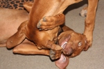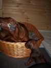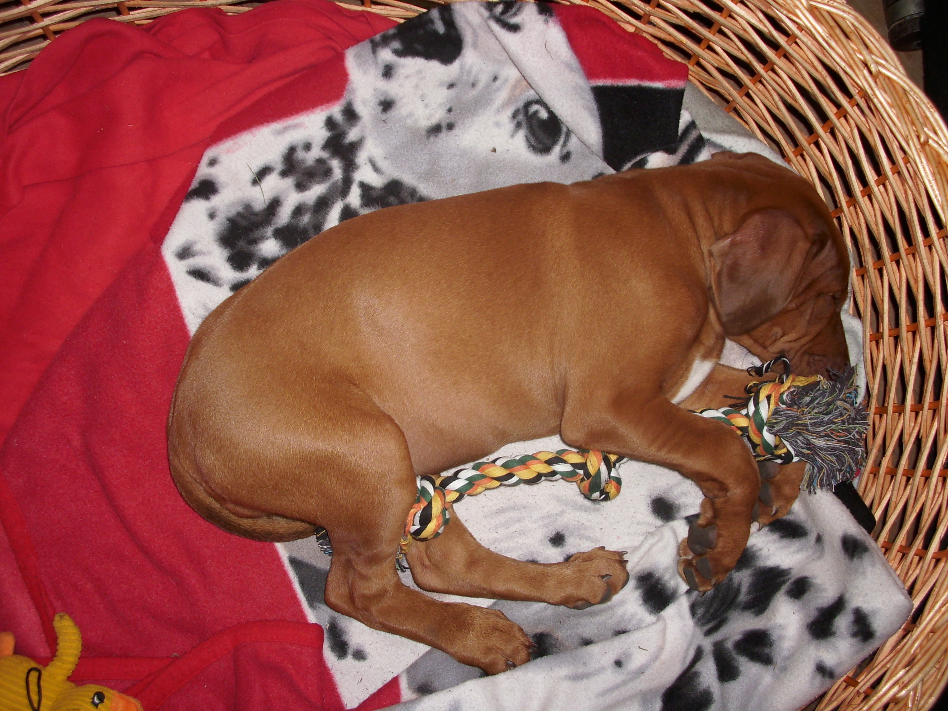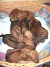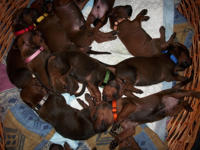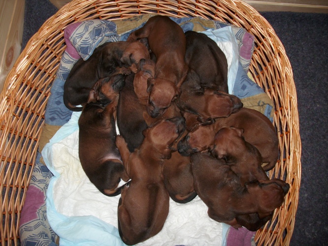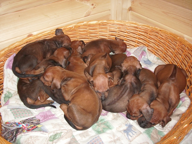 Je to jisté. Máme tu vrh B. Stejně jako u Aček jsme hledali naprosto nepříbuzného pejska. Protože se nám osvědčilo krytí hnědonosým, má i náš budoucí otec vlohu pro HN. Výhodou tohoto spojení je velice pěkná barva a minimum černých chloupků v srsti a její celková kvalita. Přes svůj věk už má Luis za sebou velkou řádku výstavních úspěchů a to nejen v naší republice. Doufáme, že i tentokrát se nám podaří spojení, ze kterého vzejdou typičtí červenopšeniční RR, s milou povahou a vlohami pro jakýkoli typ výcviku nebo pro sportovní vyžití své či svého páníčka. Pokud máte zájem o štěňátko z tohoto spojení ozvěte se.