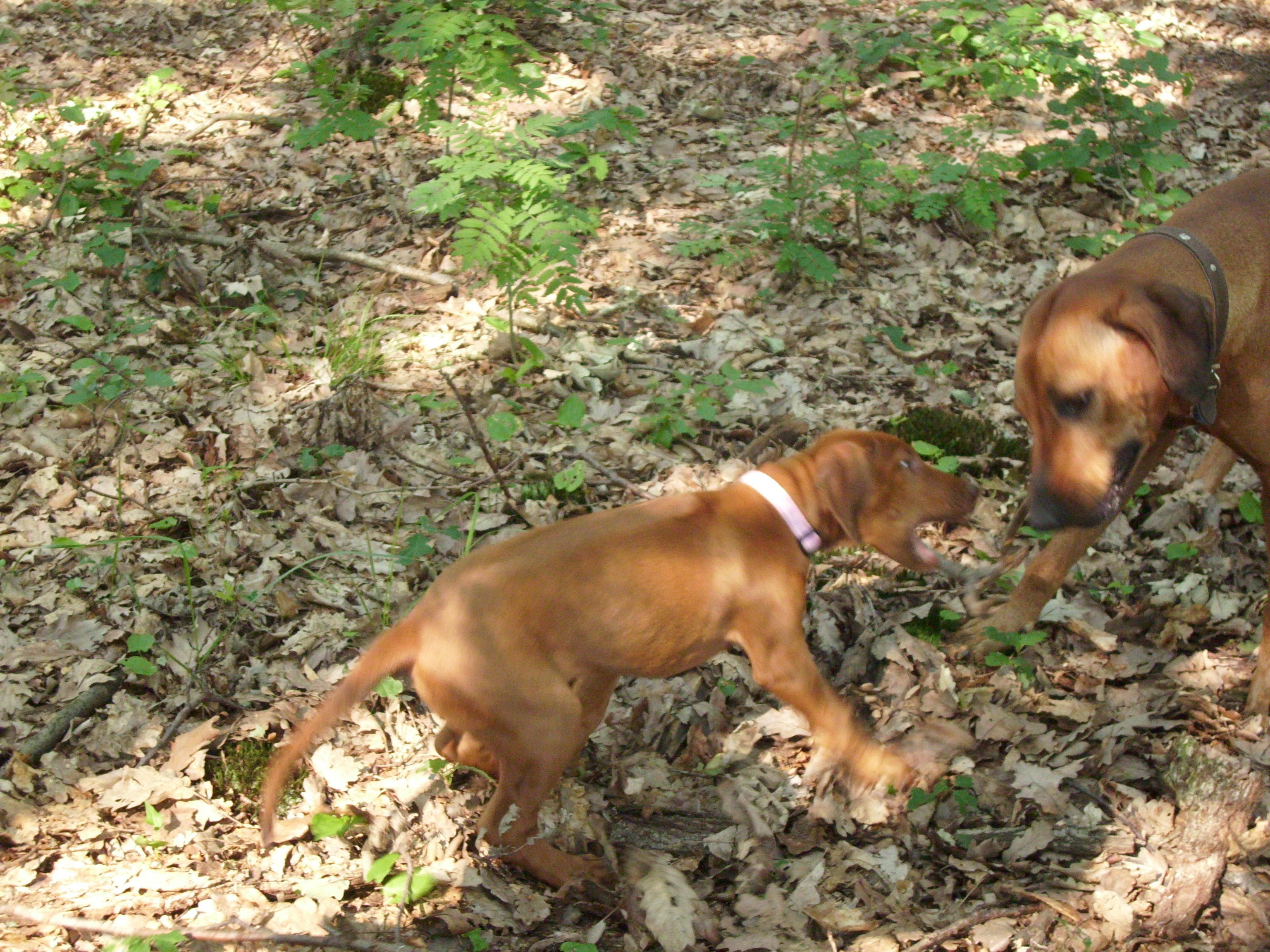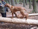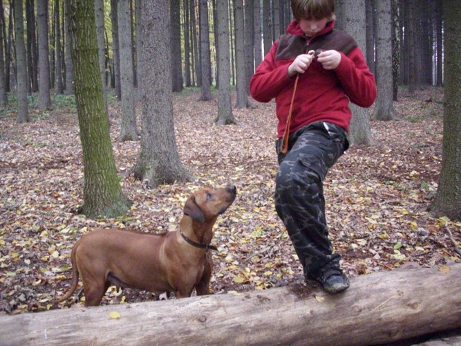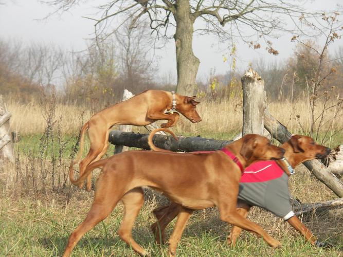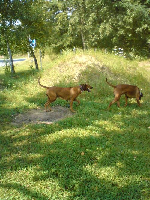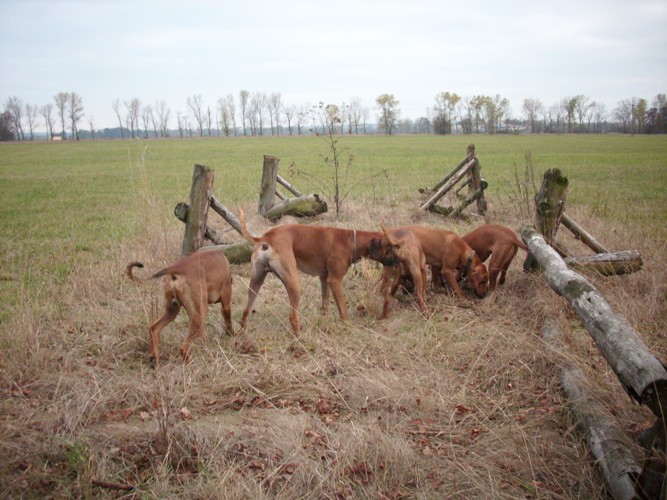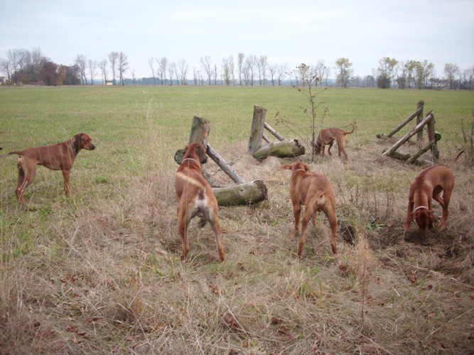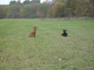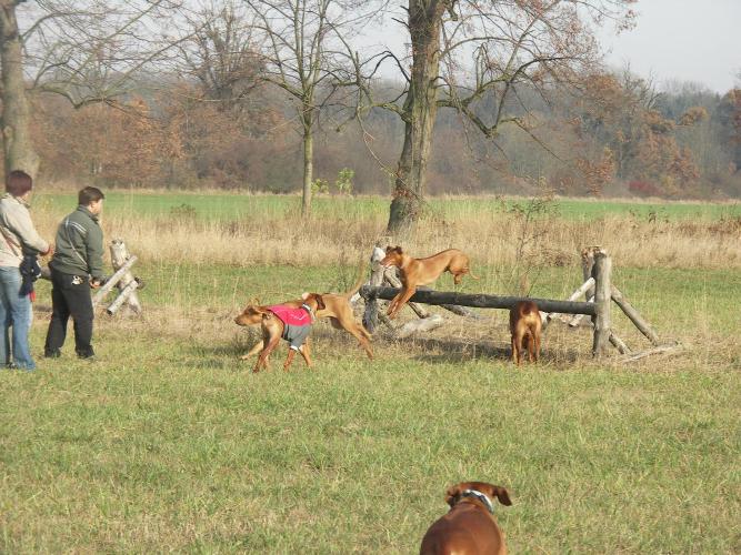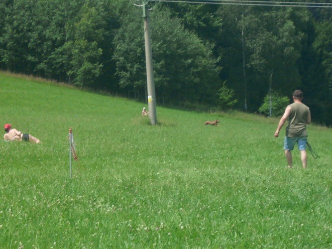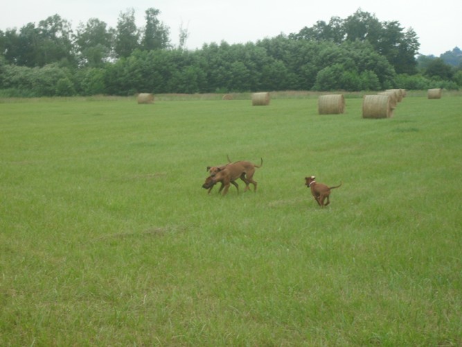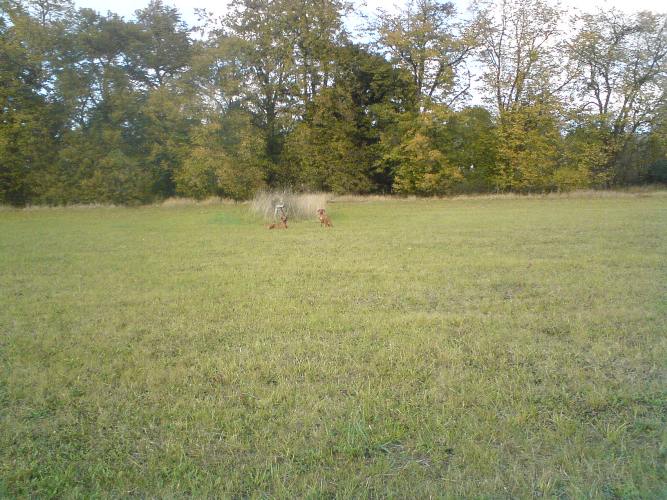 Naše mrňata opět zkontrolovala svá oblíbená místa, trochu pocvičila přeskoky. Klukům se to také líbilo a předvedli, co umí oni. Tentokrát se to obešlo bez výpravy za zajíčky. Zrzci se bezvadně vylítali sami, občas vypadali spíš jak norníci, když hrabošili veškerým hlodavcům jejich obýváčky. Bylo to super a určitě to brzy zopakujeme.