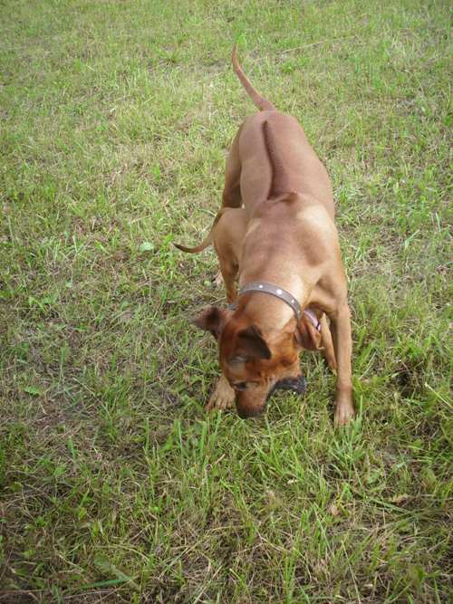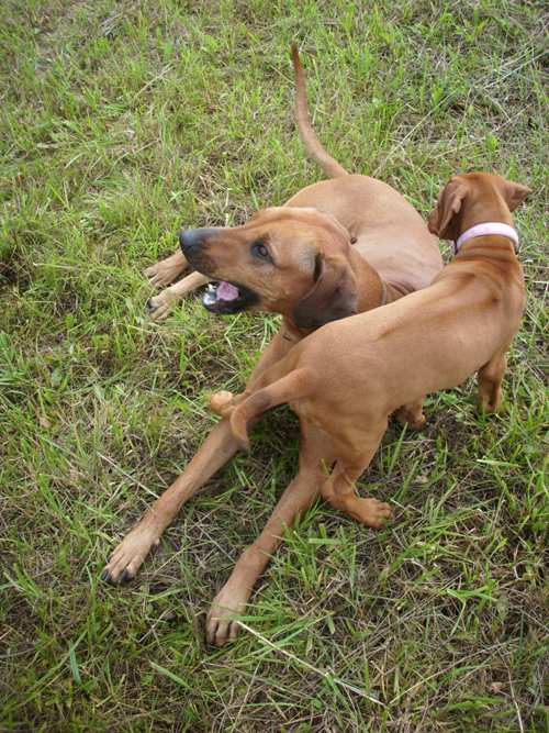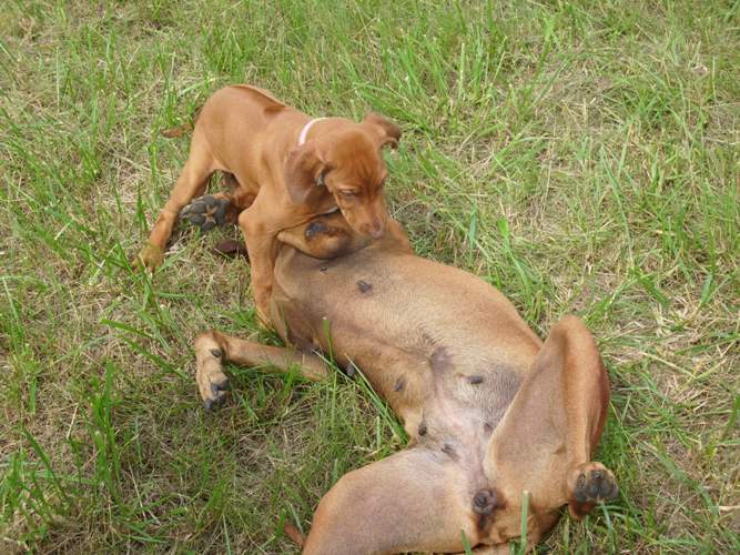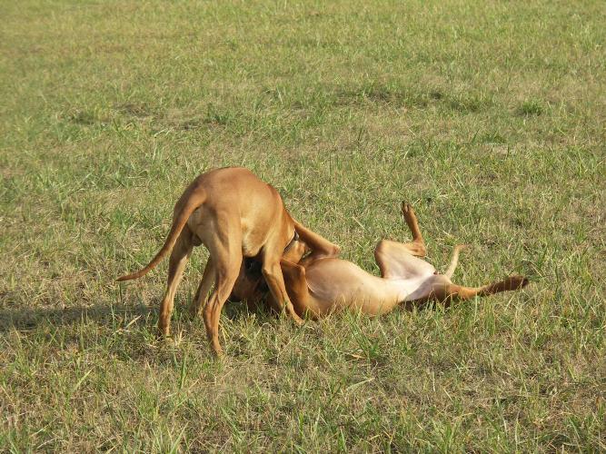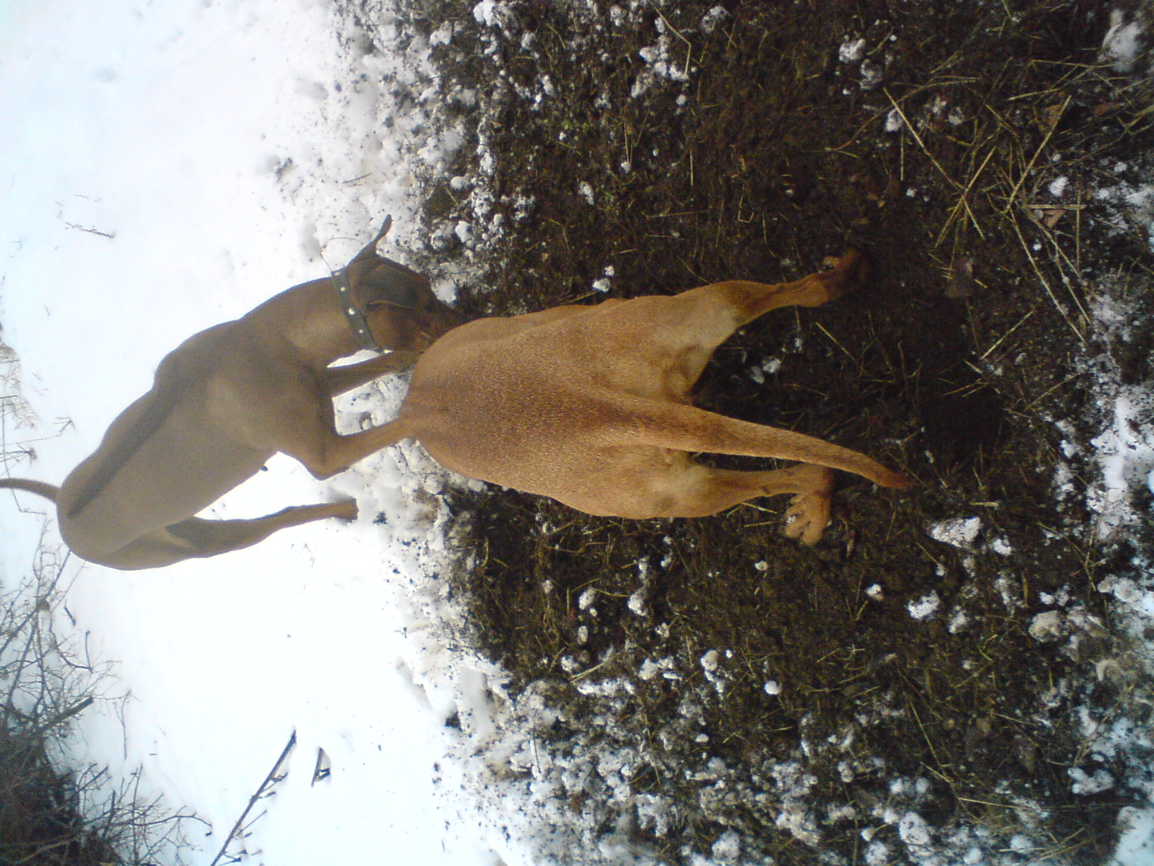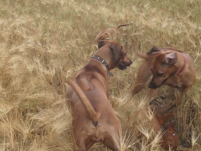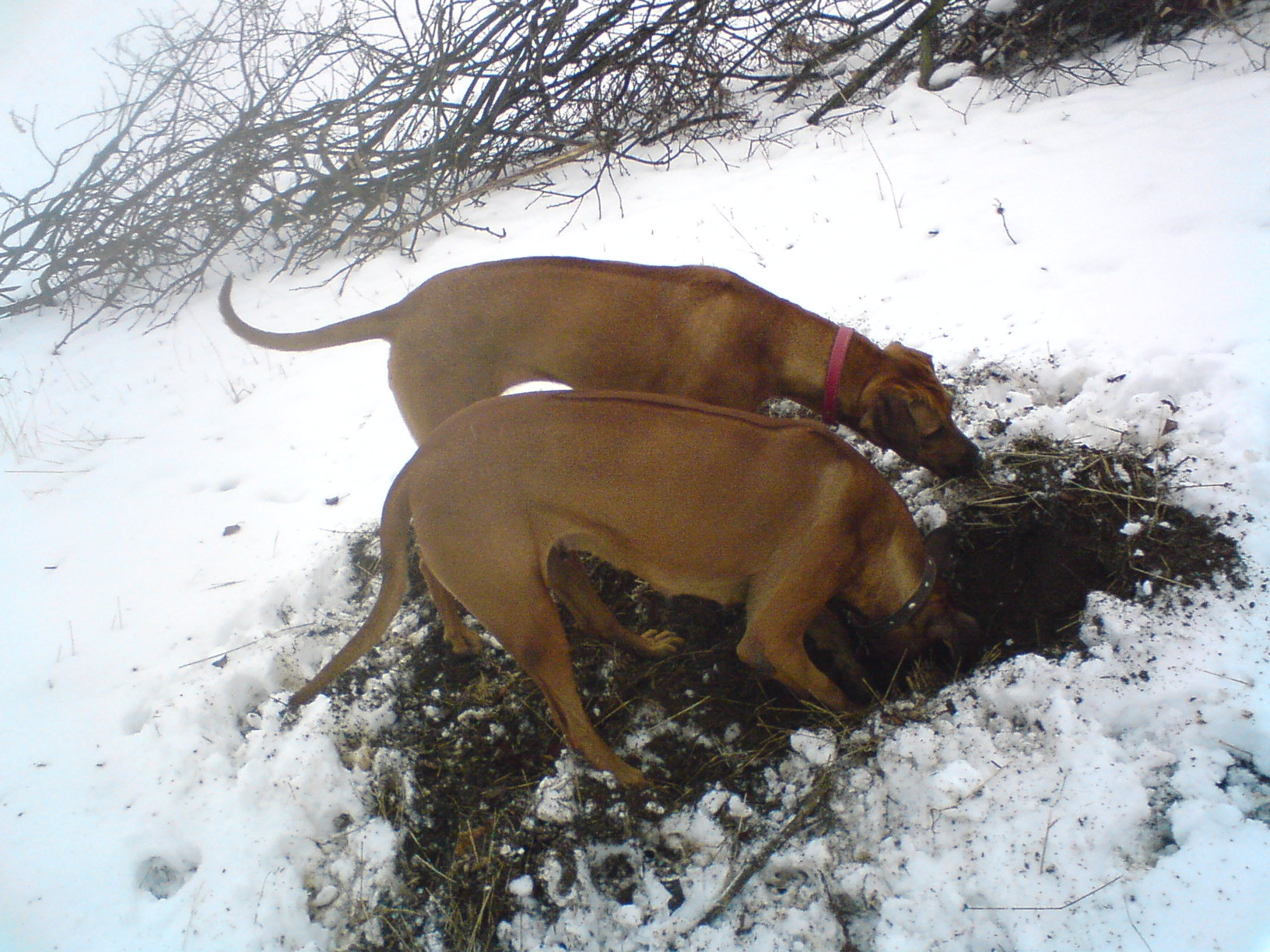 Naše mrňata opět zkontrolovala svá oblíbená místa, trochu pocvičila přeskoky. Klukům se to také líbilo a předvedli, co umí oni. Tentokrát se to obešlo bez výpravy za zajíčky. Zrzci se bezvadně vylítali sami, občas vypadali spíš jak norníci, když hrabošili veškerým hlodavcům jejich obýváčky. Bylo to super a určitě to brzy zopakujeme.