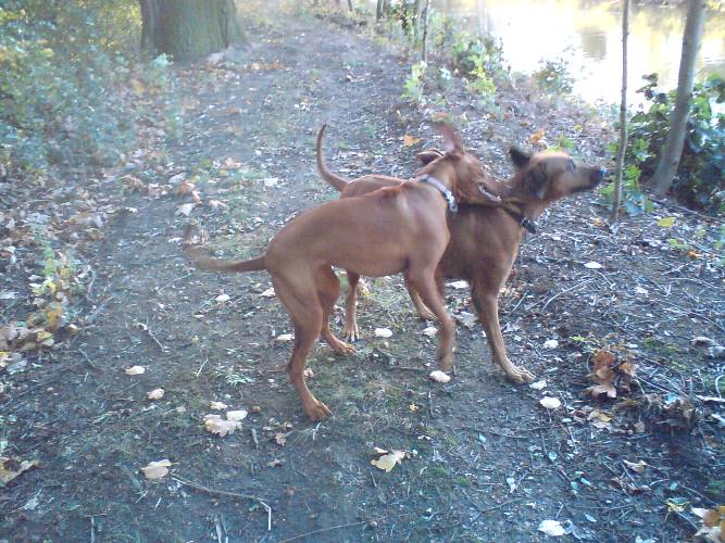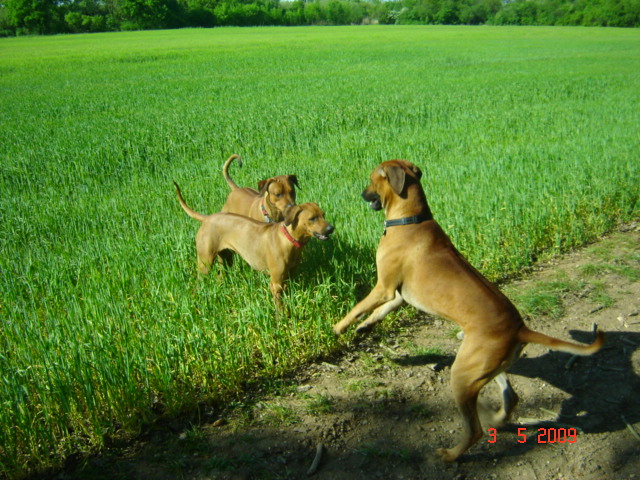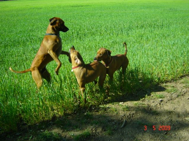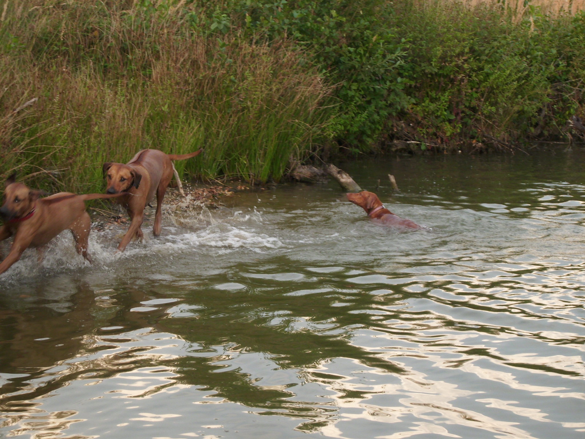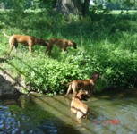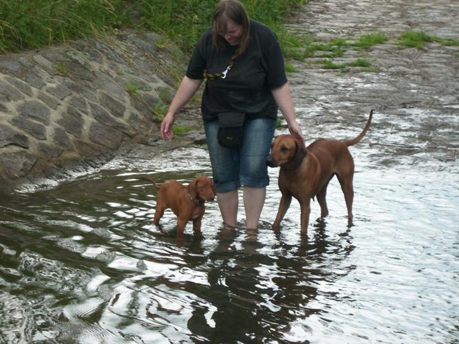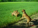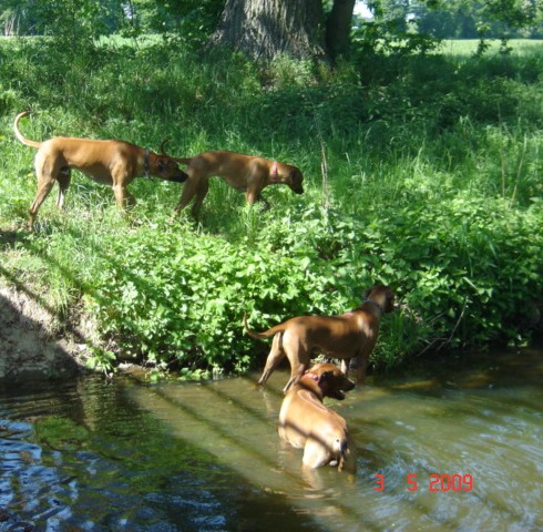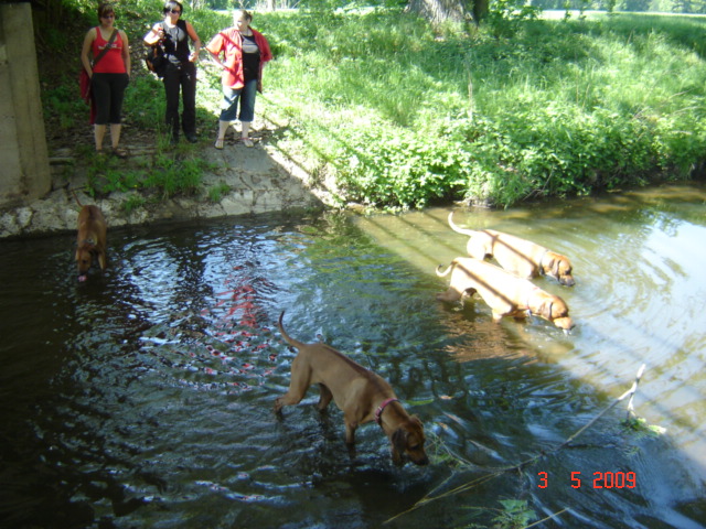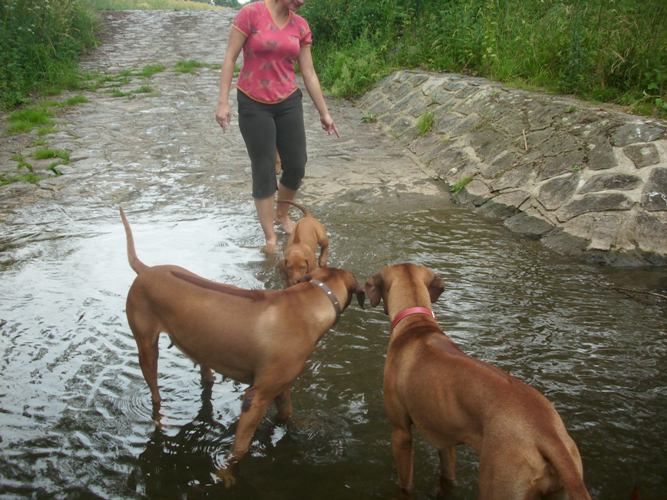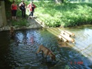 Přijeli za námi RR kluci z Helya Ridge se svojí paničkou Luckou. Bylo to bezva zakončení prodlouženého víkendu. Trochu nám zatopili, když se jako správná tlupa pustili za zajíčkem. Vše dopadlo OK. Ollie se dokonce naučil přecházet jez. Snad se jim to líbilo, tak jako našim holkám a brzy to zopakujem.