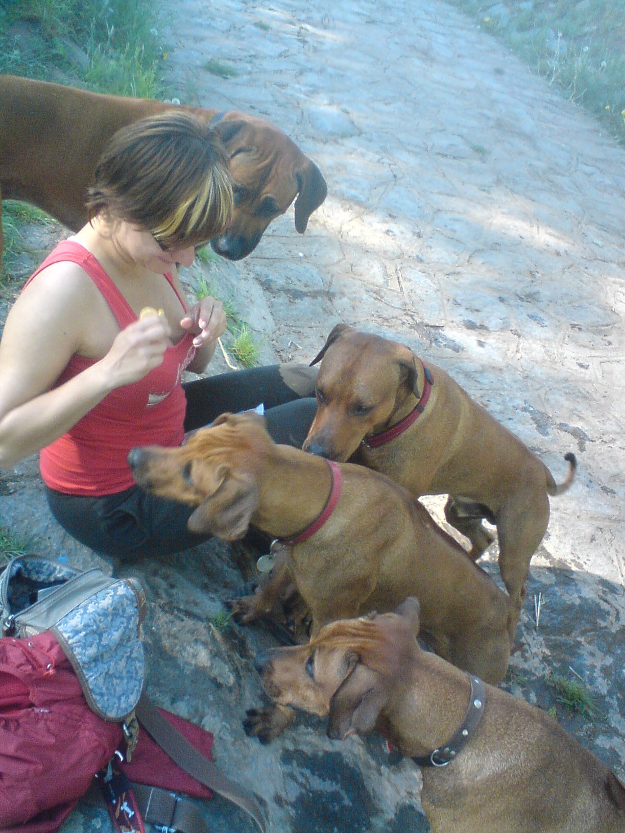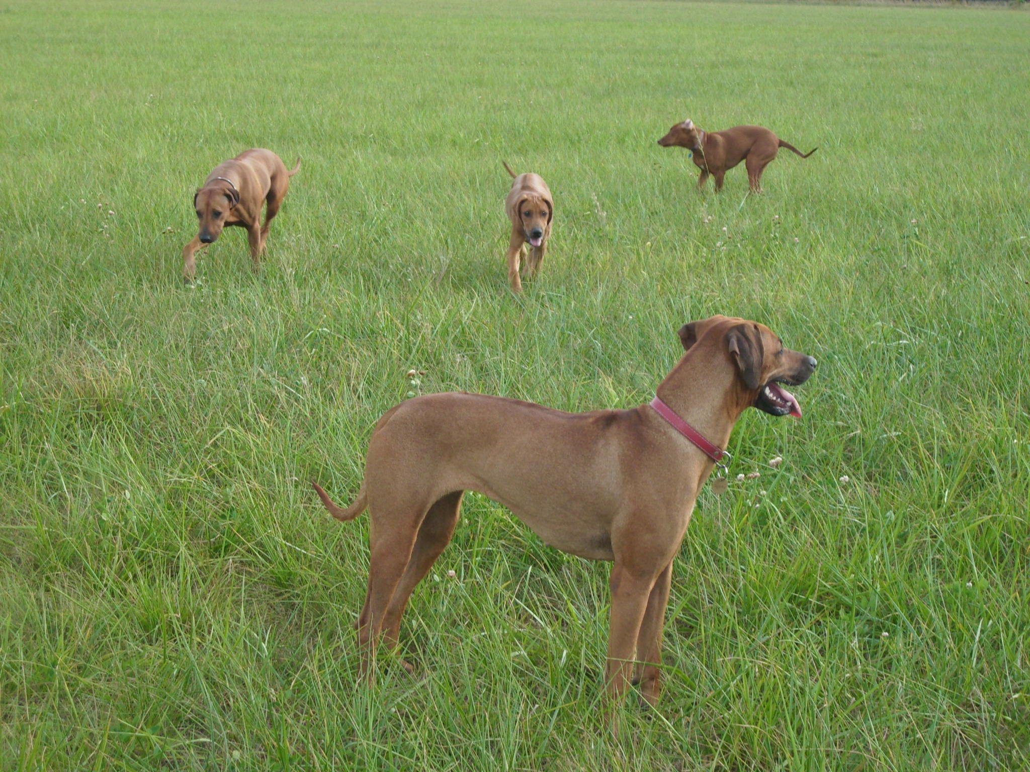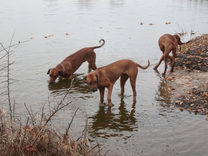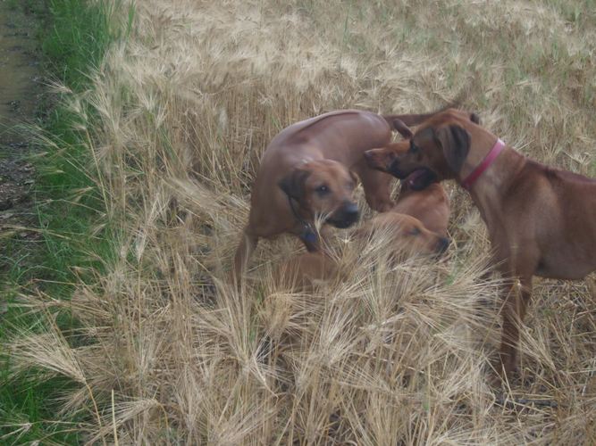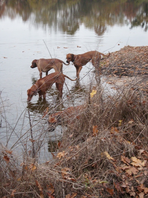 Přijeli za námi RR kluci z Helya Ridge se svojí paničkou Luckou. Bylo to bezva zakončení prodlouženého víkendu. Trochu nám zatopili, když se jako správná tlupa pustili za zajíčkem. Vše dopadlo OK. Ollie se dokonce naučil přecházet jez. Snad se jim to líbilo, tak jako našim holkám a brzy to zopakujem.