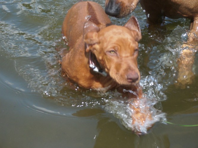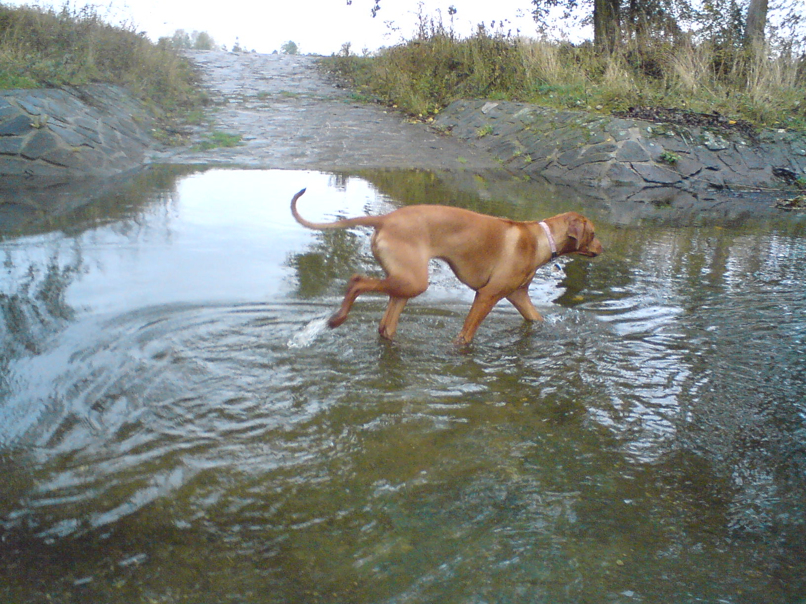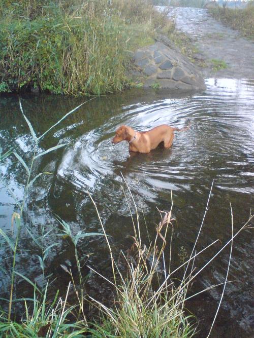 Zase se nám poštěstilo několikrát v tomto týdnu vyrazit na písák. Naše holky se v plavání vyžívají, a tak je to jejich oblíbená zábava. Agu, i když vodu miluje, stále bojovala s plaváním, jako takovým. Ale to je už minulost. Můžu s hrdostí oznámit, že naše Agáthka, vlastními silami, přeplavala písák, za velkého povzbuzování nás dvounožců a vydatného předvedení své matky. Jen mi lidi vysvětlete, tu nespravedlnost: já vážně plavu už spoustu let, ale i ta naše malá čubina plave rychleji než já.