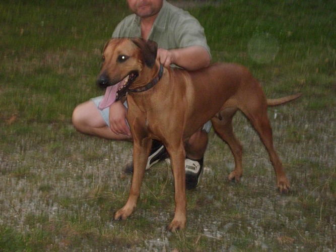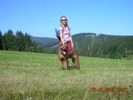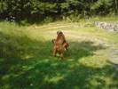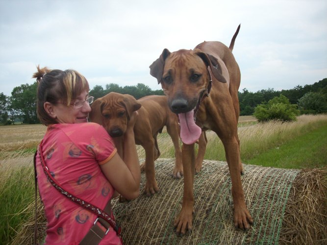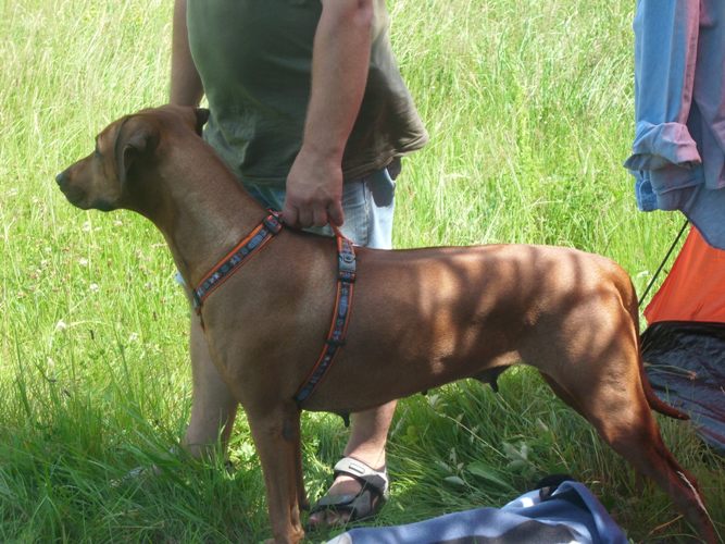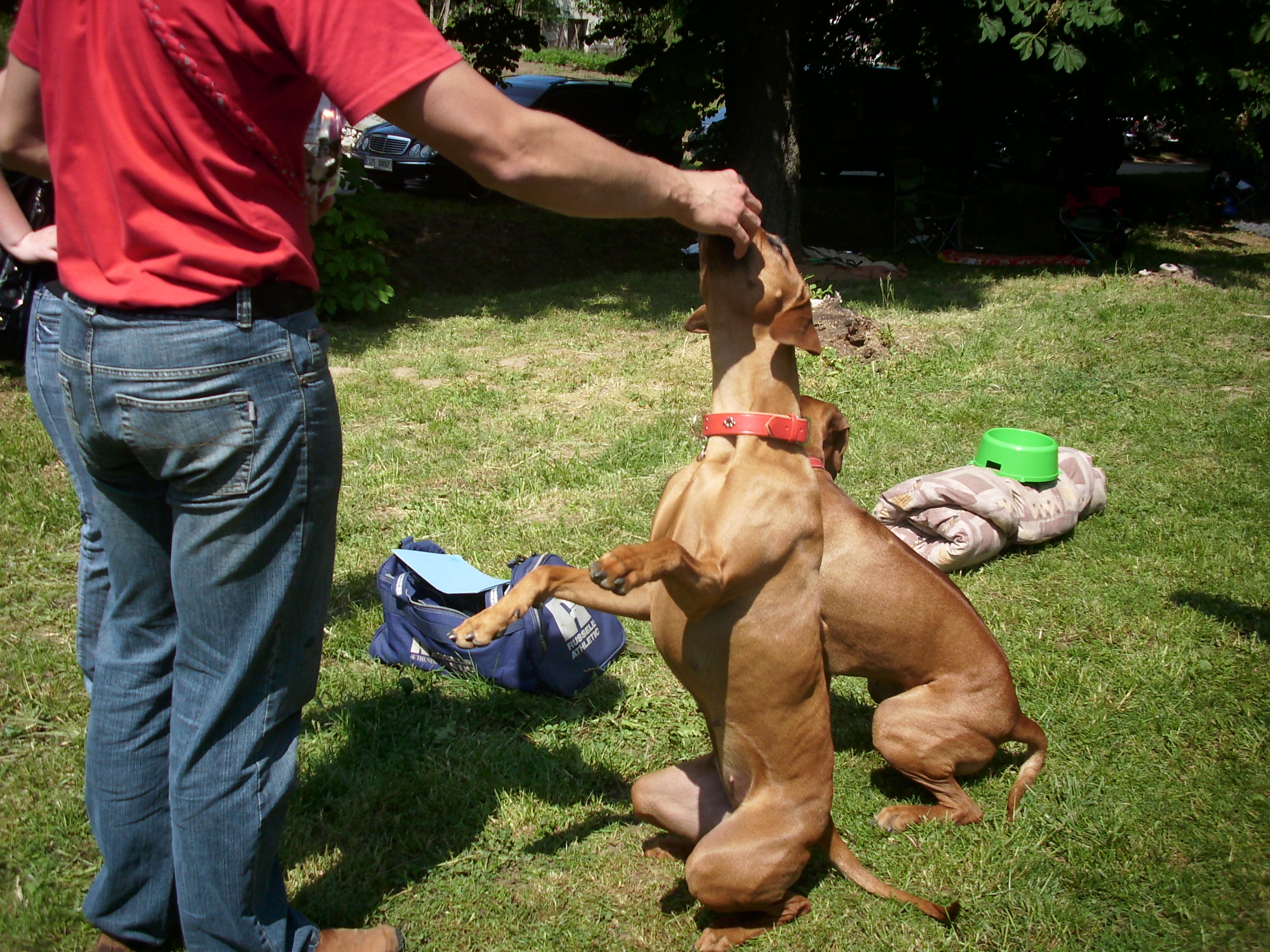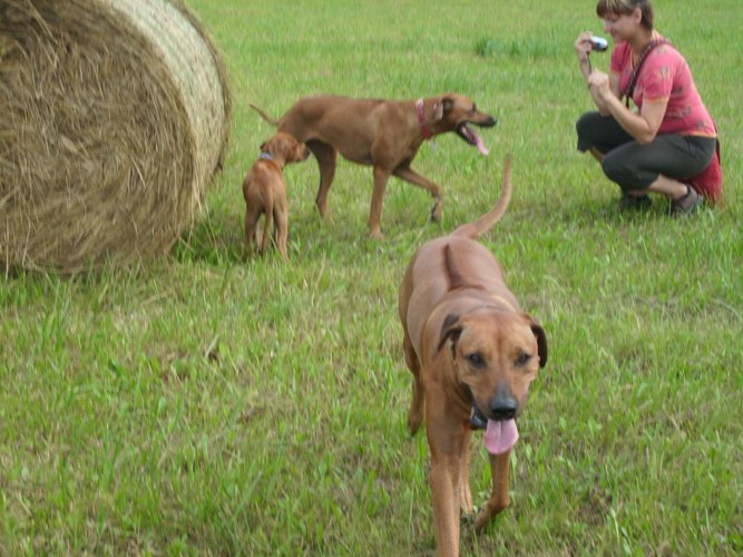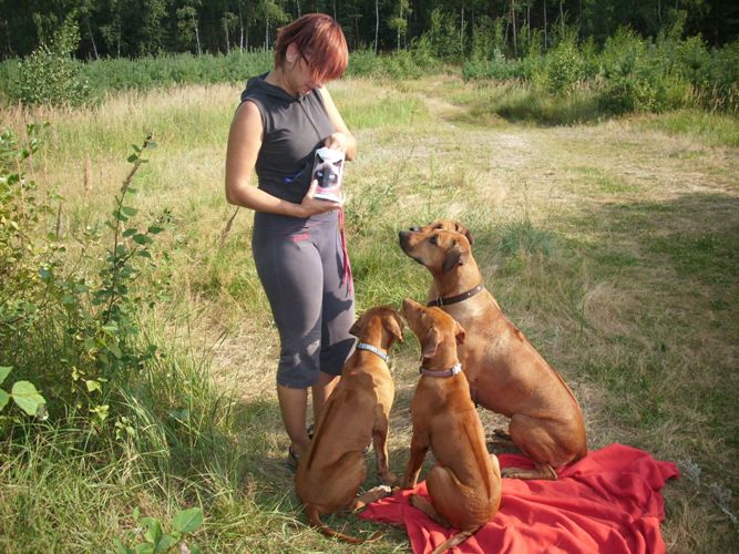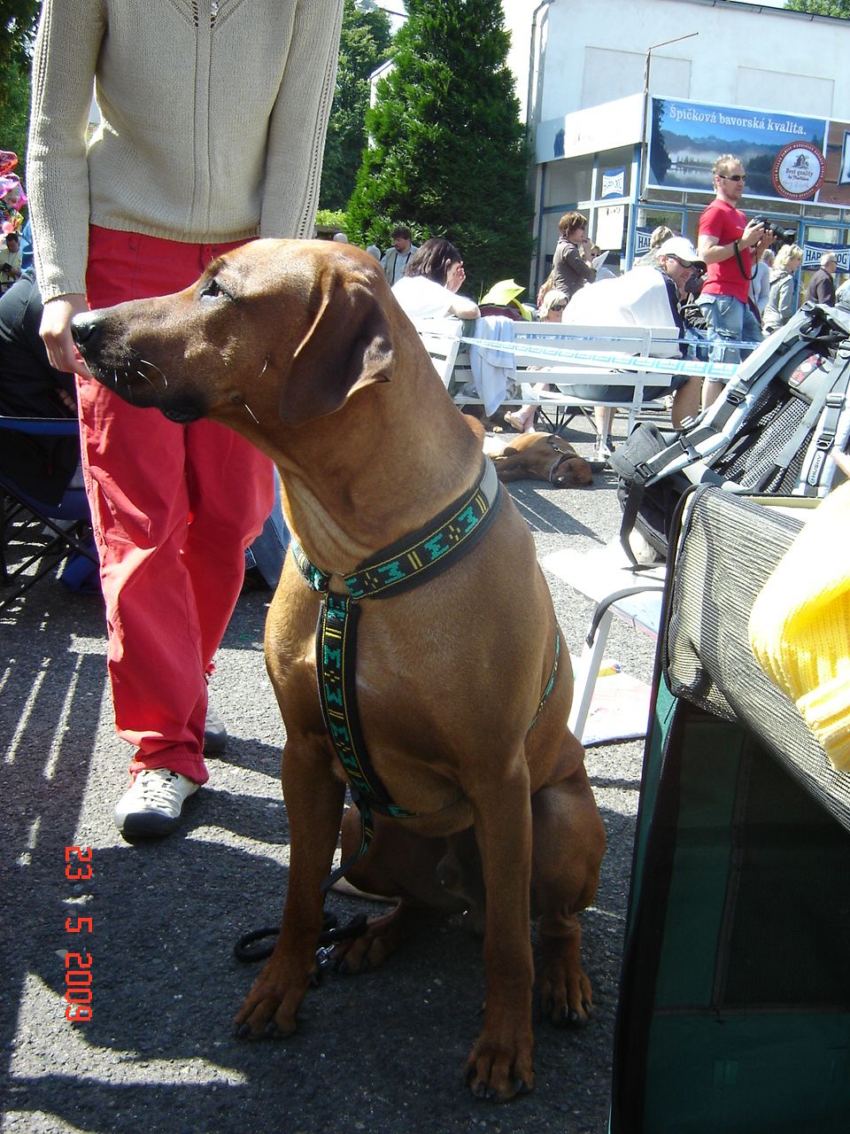 Čekala nás dvoudenní výstava na Orlíku. Každý rok se tam schází neskutečné množství RR. Celý týden před výstavou jsme hodně vycházkovali a chodili brodit Cidlinu, či spíše její zbytky, a zaplavat si. Semtam jsme si střihli výstavní postoj. Vážně nechápu, co lidi mají na tom, že učí člověka, tedy pardon - psa, stát. To přece umíme skoro od narození. Ale co, tak je nechám při tom, že mě to naučili. Když jim to udělá radost...