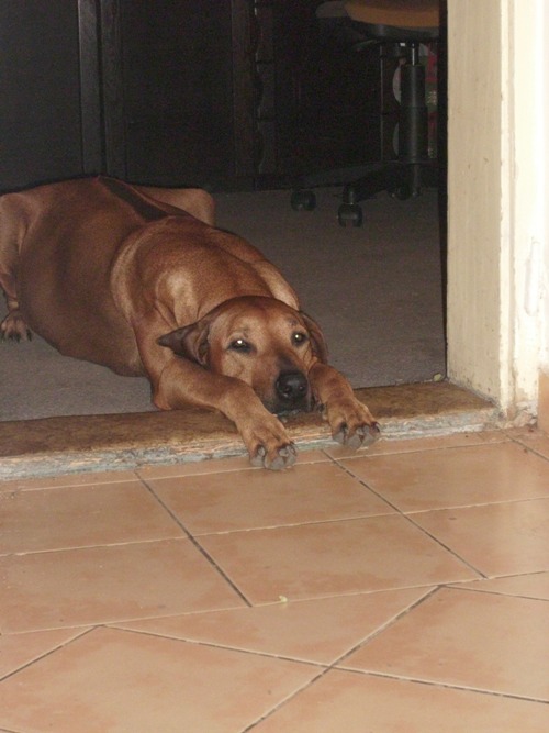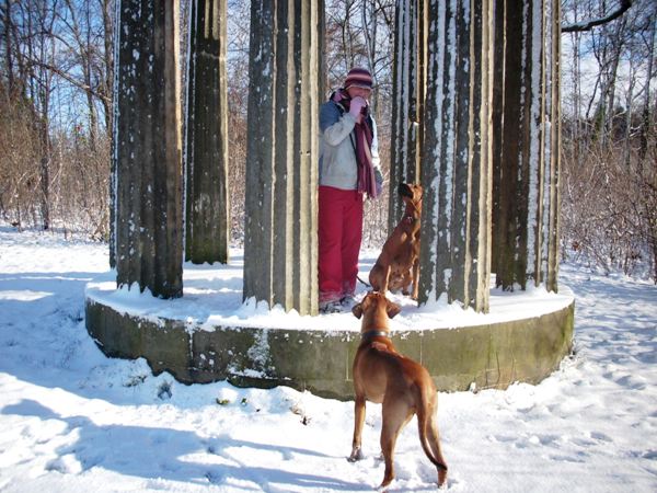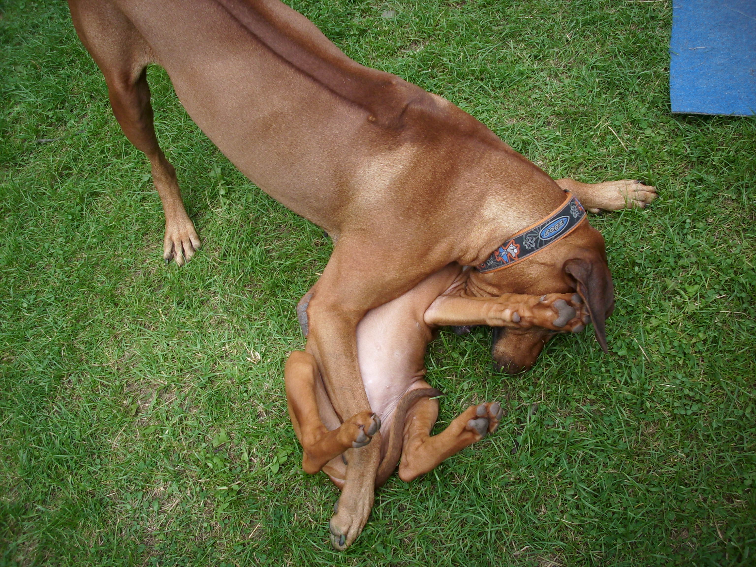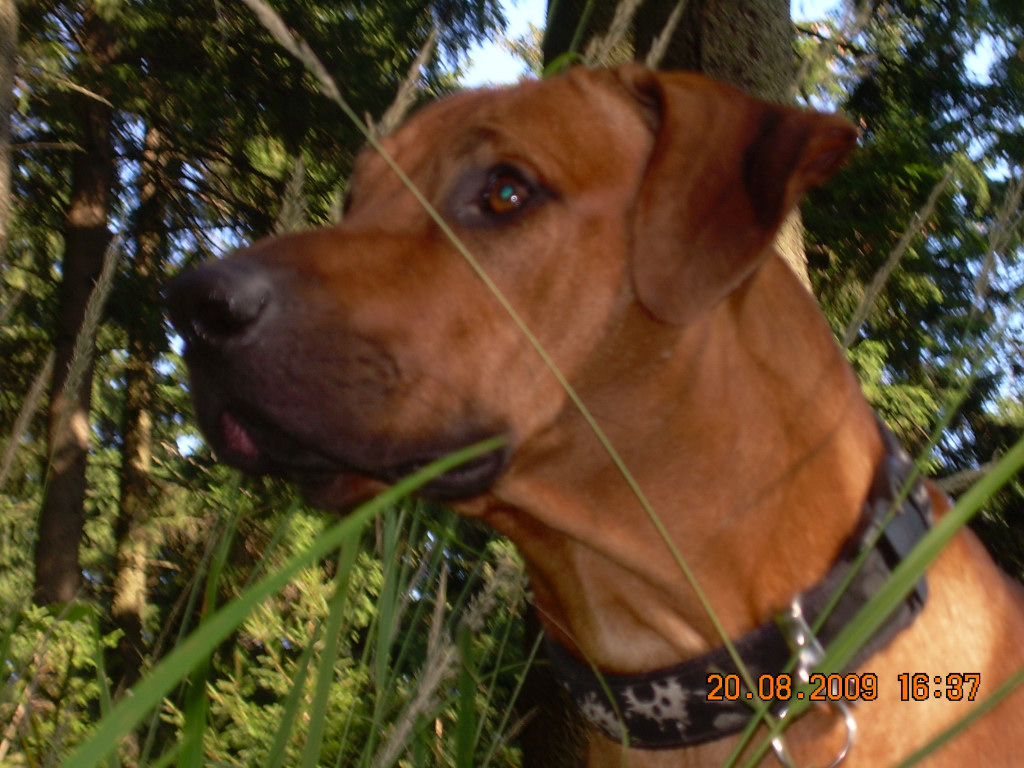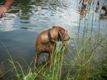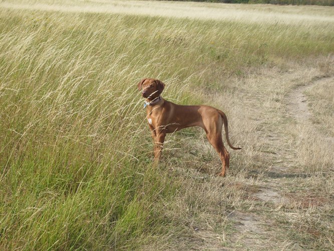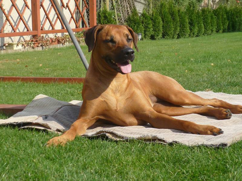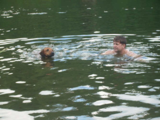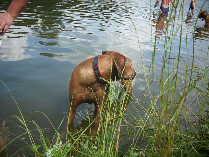 Čekala nás dvoudenní výstava na Orlíku. Každý rok se tam schází neskutečné množství RR. Celý týden před výstavou jsme hodně vycházkovali a chodili brodit Cidlinu, či spíše její zbytky, a zaplavat si. Semtam jsme si střihli výstavní postoj. Vážně nechápu, co lidi mají na tom, že učí člověka, tedy pardon - psa, stát. To přece umíme skoro od narození. Ale co, tak je nechám při tom, že mě to naučili. Když jim to udělá radost...