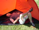 . I když, znáte pohádku o princezně na hrášku? Tak to jsme byli my - pelíšek, pelíšek a cestovní domeček a na vrchu 3 zrzci. Škoda, že to nikdo nevyfotil:-). Poté, co jsme se prokousali všemi šílenými opravami a úpravami dálnice (opravdu díky ti ŘSD) jsme dojeli až na místo, za tmy. Jen jsme se ubytovali a padli za vlast.