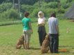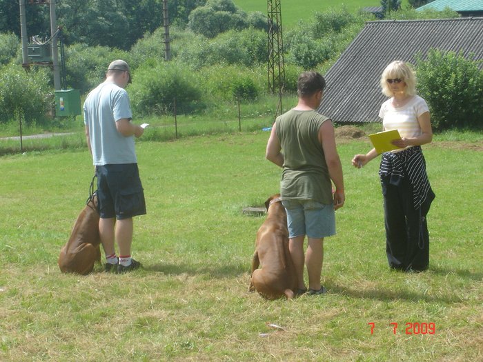 V úterý čekala na psy ZOPka. Agathka byla přihlášena a Alenka neustále spekulovala, že zbytečně, a že to bude propadák. Jo, jo, jo... houbelec, stejně jako předchozí dny, měla Agu úžasnou náladu a dokonce i přenesení, ze kterého jsme měli hrůzu, vyšlo na 7 bodů z 10. Byla bezvadná a jen jediný bod chyběl k tomu, aby splnila ZOP na výbornou. Ale i VD je neskutečný úspěch. Aby byla legrace přihlásili jsme Milana s Archy. Kdo má poslouchat, že ženská neumí pořádně vpravo bok, čelem vzad apod., protože nebyla na vojně. Co vám budu povídat... paní rozhodčí pravila, že až na to čelem vzad... Prostě Archynka splnila na výbornou (93 bodů) a to jí ještě páníček svou nervozitou o pár bodů připravil. Jen jediný pes měl více bodů. Holt máme doma poklad a ani o tom nevíme.