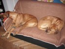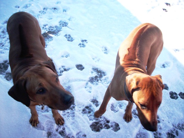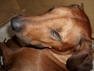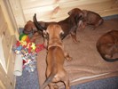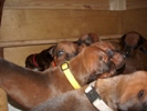 Domů jsme vyráželi unavení, ale nadmíru spokojeni. Moc děkujeme za milou společnost dvounožcům od mamky a sourozenců. Také rodině Hoffmanových, se kterými jsme se velmi rádi viděli, a kteří pořídili svému Arrnymu zrzavou kamarádku Audry (pak, že zrzavé šílenství není nakažlivé). Stejně byl Arrny jen výmluva, jeden RR prostě nestačí:-). Těšíme se se všemi brzy na viděnou!!!! Fotečky jsou nejen u nás, ale i u Damíka a také Fanča dokumentovala.