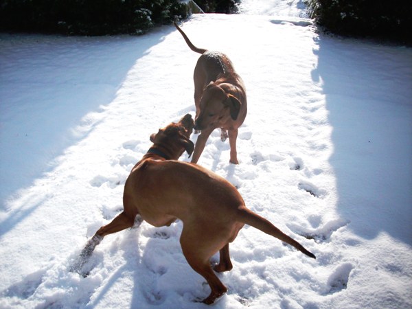 Ozvala se nám Anetuška. Stejně jako Airuška má za sebou první hárání. Měří 65cm a překročila váhu 30kg. Jako sestry a mamina miluje sníh.