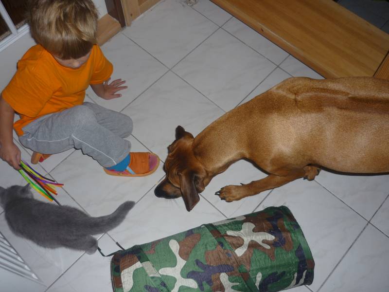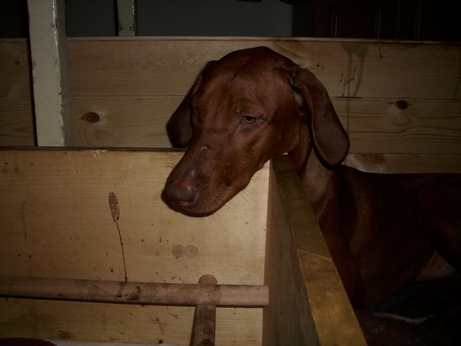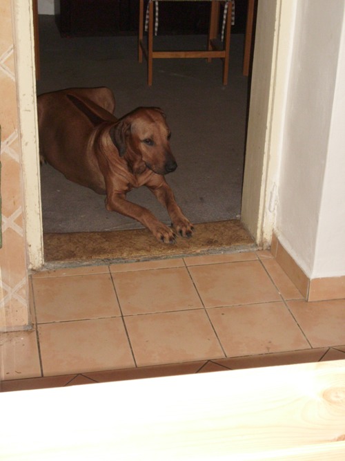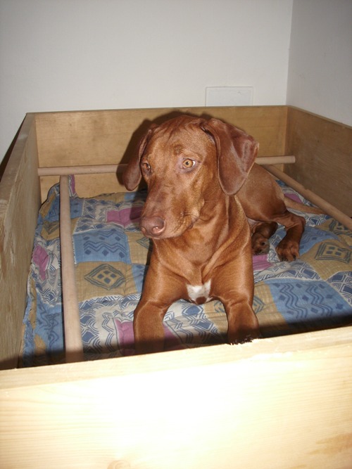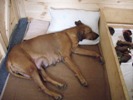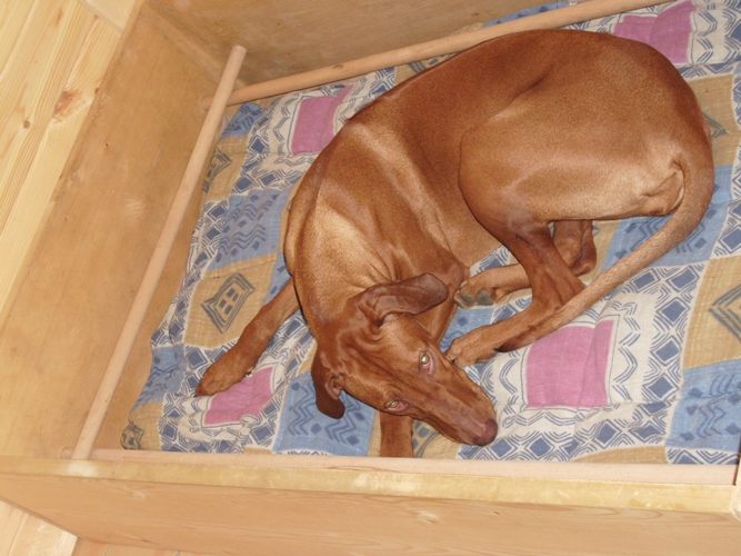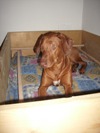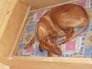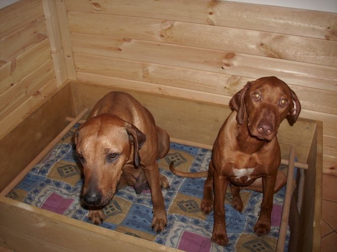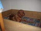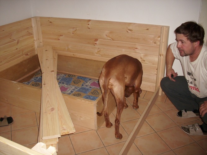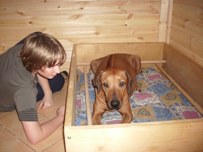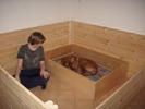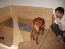 Samozřejmě, že museli mít asistentku. Kohopak asi - no jistě, Angee. Neustále kontrolovala, až i Archy přišla a celá udivená koukala, co že se to děje. Jojo, Ačkům stačila malá ohrádečka. Vždyť díky počasí byly celý den venku. Tentokráte holt dáme v plen naši kuchyň. Obě holky prubnou bednu (Angee vážně odmítá pochopit, že neděláme budoár pro ní). Konečně s hotové dílo vyzkouší i Archynka.