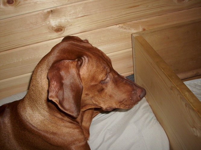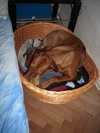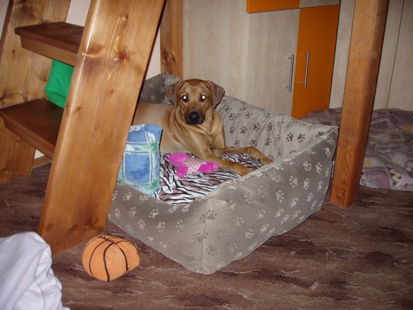 Tak po nádherném víkendu nastaly všední dny. Opět holky musí být samy doma. Ovšem hned při pondělku se Angee rozhodla, že její pelíšek je nuda a tak ho upravila. Andílek, samozřejmě se tvářila jako by nic. A tak od úterka bivakuje na dekách. A pro škodolibé z řad nezúčastněných a hlavně rodiny - od úterka se žádné škody nekonají. Dokonce i nářadí nechala být. I když je fakt, že v úterý se snažila naučit anglicky z Jendovi učebnice. Ale to je jeho problém neb odcházel poslední a neuzavřel vchod do jejich pokoje. Jsem zvědavá, co nastane až ušiju nový povlak na pelíšek a nechám jí ho napospas.