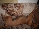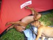 Po čtyřhodinové procházce jsme toho měli dost. Archynce jsme evidentně nechyběli. Naše mamina už zase vyhledává svou oblíbenou polohu. Často nastavuje bříško a chce, abychom mimísky pěkně pohladili. Zřejmě si říká, že se socializací se musí začít včas. Bříško už jí začíná pěkně růst (40den březosti).