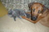 Večer jsme je zvážili a za Alenčiny statečné asistence jsme jim dali oboječky, do kterých už dorostli. Také jsme zkrátili drápky, aby maminu příliš nepoškrábali. Nafotili jsme u toho úžasné portrétky. Jen co fotečky zpracuju , dám je do jednotlivých galerií. Opět je tu malá změna. Protože není tyrkysový oboječek stává se dneškem paní tyrkysová paní oranžovou. Tímto mockrát děkuji Evičce z Magmabony za zapůjčení. Zároveň poprvé miminka kontrolovala Aguša a Damík. Zatímco Damík si říkal, co to je? Aguša bohapustě zdrhla a dělala, že máme v kuchyni minimálně nákazu prasečí chřipkou. A my si říkali, že bude toužit po adopci, když má tu falešku. Kdepak, pro Agu je mimískem Damík a ty mrňavé žížalky ty si nechte (fuj!)