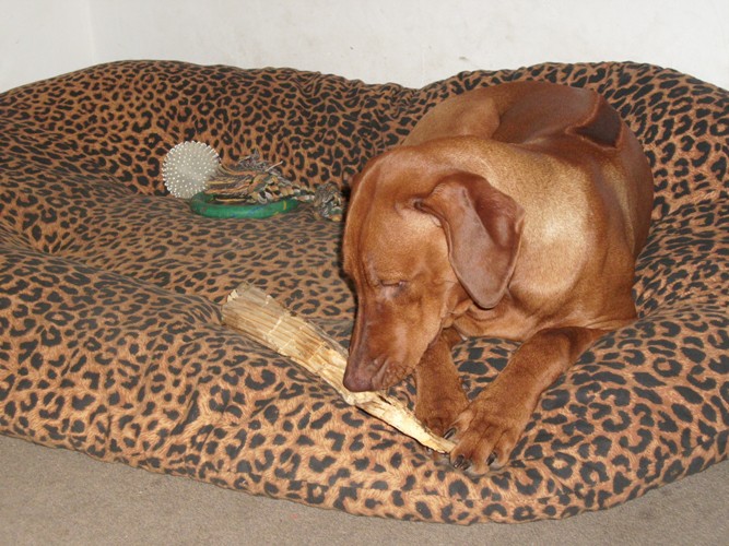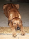 Naše velké zrzavé štěstíčko, přejeme ti hodně pohody a mlsinek. Hodné dětičky po hladkém porodu. Velké procházky a řádné honičky s kamarády. A nám spoustu a spoustu roků ve tvé společnosti. Máme tě moc rádi.