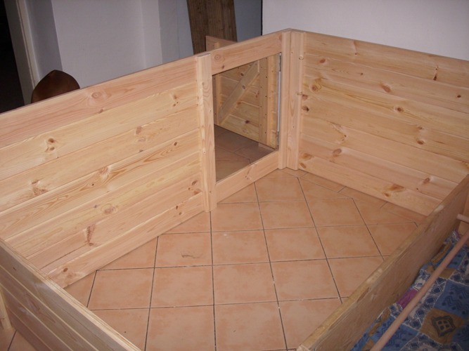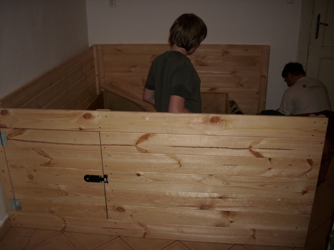 A je hotovo. Snad se bude ohrádečka mimískům líbit. Mě se líbí už teď. Jen mám dojem, že mají lepší bejvák jak my. A jak krásně voní dřevem. A kdo nám přišel na kolaudaci? Ale ovšem, naše Angee. Je fakt, že maminy si mají přivykat na porodní bednu včas, aby ji přijaly za místo svého porodu. Ale fakt bych řekla, že na to má Mraveneček času dost. Ovšem ona to tak nevidí.
