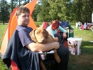 V neděli byla přehlídka psů. Musím podotknout, ač jsme to brali jenom jako srandamač, byly naše pocity z ní rozpačité. Až na místě jsme zjistili, že můžeme přihlásit i pupíky. Jsem ráda, že jsme to neudělali. Angee nebyla úplně fit a nakonec – raději si necháme zhodnotit naše pupíky na nějaké výstavě, kde bude zajímat rozhodčí pes jako takový. Potěšilo mě, že Archynka byla hodnocená jako sympatická fena, která má, i přes svou velikost, na první pohled krásnou samičí hlavu. Naše mimča celou přehlídku v klidu prospala.