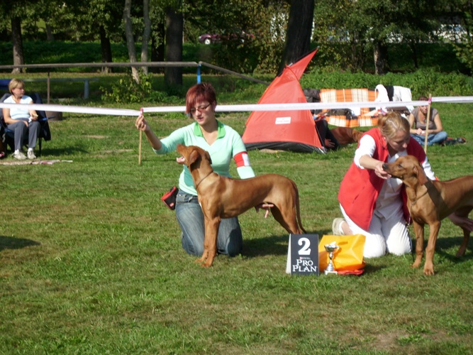 Akim, Akim, Akim....ano, s naším pupíkem jsme se viděli po třech měsících a opravdu splnil naše očekávání. Ve třídě mladých mu paní rozhodčí zadala známku V2/6. Agathka nám udělala velkou radost svým chováním v kruhu, takže ani známka VD nám nezkazila náladu. Navíc hodnocení "velmi elegantní fenka" nemělo chybu v porovnání se skromným popisem Akima. Těšíme se na setkání v Lanškrouně :-).