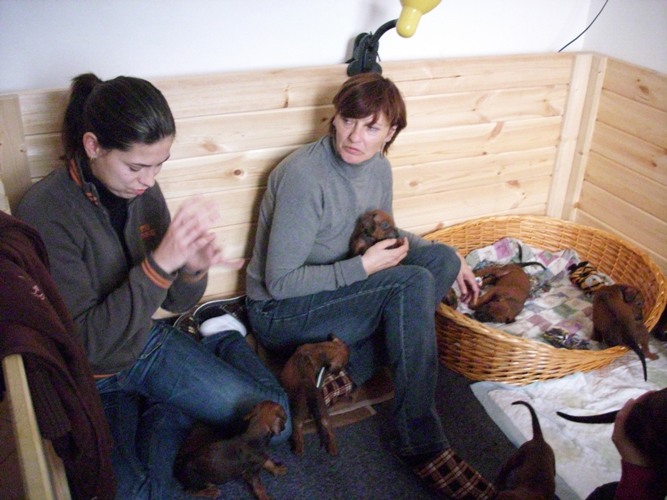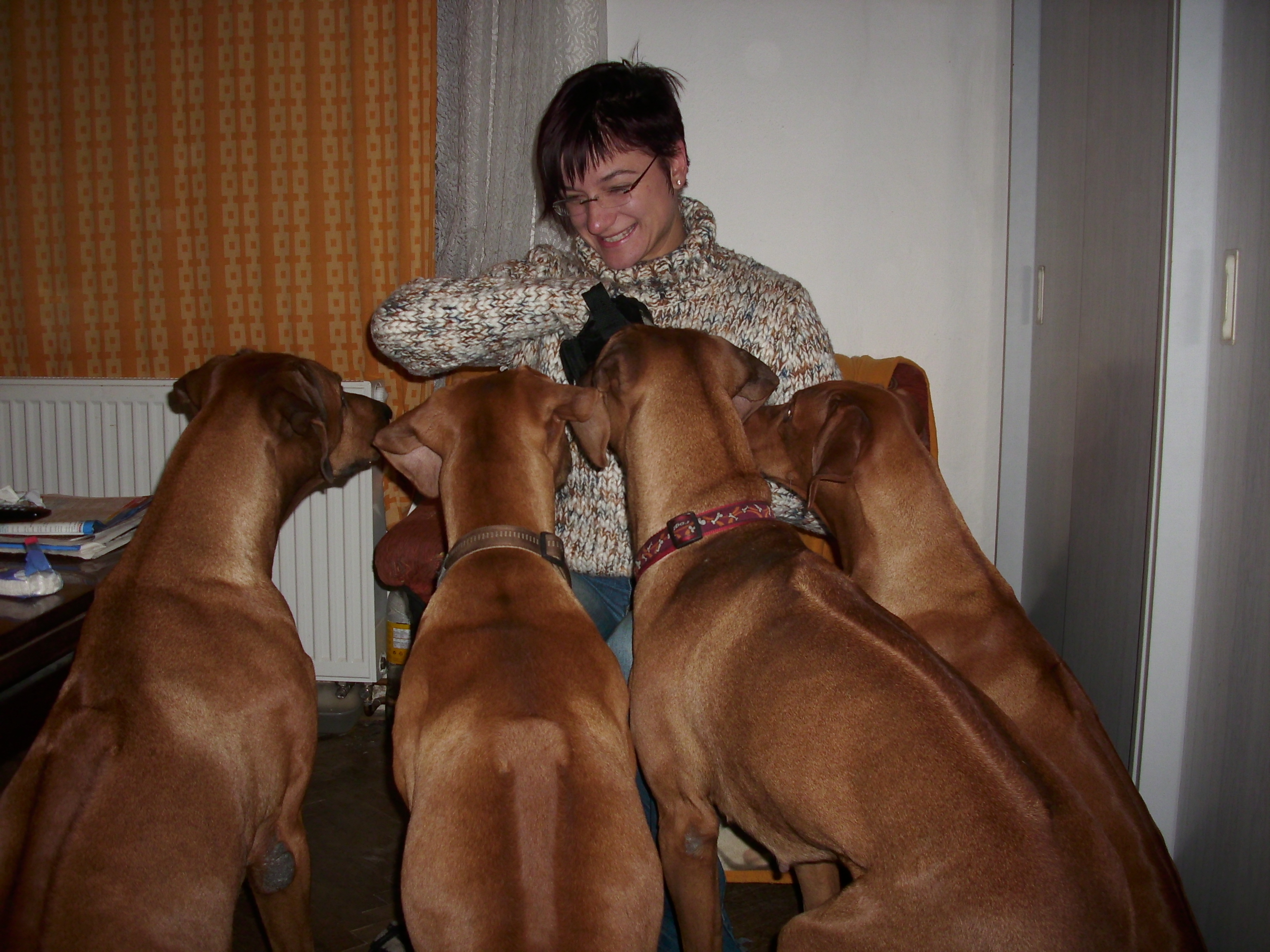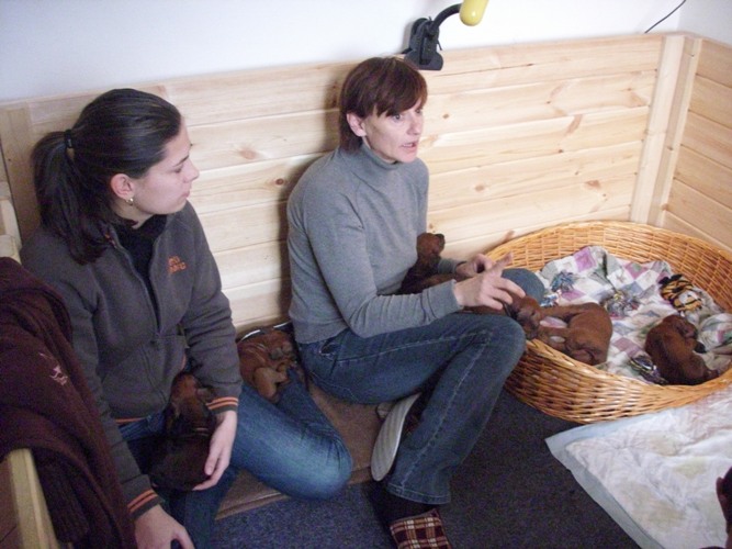 V neděli dorazila dlouho očekávaná návštěva z Magmabony. Byla tentokráte zastoupena jen dvounožci a to Evou a Mirkou. Děvčata nám přivezla krásné kalendáře, ze kterých na nás koukají magmaboní mimísci. Shodli jsme se, že už to snad není ani pravda. Zvlášť když dorazila ještě Alenka s Lukášem a "malým" Damem a Agušou.