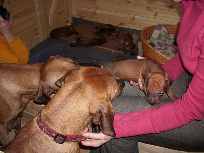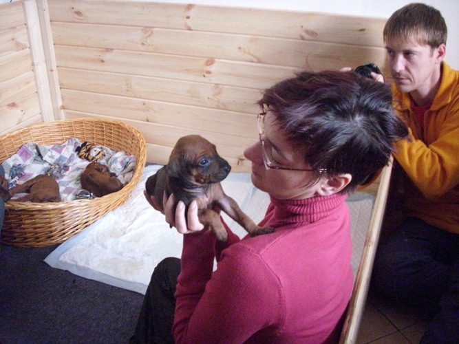 Na své kulaté narozeniny jsem dospěla k závěru, že si udělám radost. Jakou jinou podobu by měla mít než štěněcí. Mám v živé paměti, jak dalece jsme se dohadovali, které z našich štěňátek si necháme. A tak jsme se rozhodli, že si vybereme novou krev pro naši chovatelskou stanici. S výběrem jsme začali, máme, tak říkajíc, pár želízek v ohni. Jakmile bude vše jisté, rádi se pochlubíme.