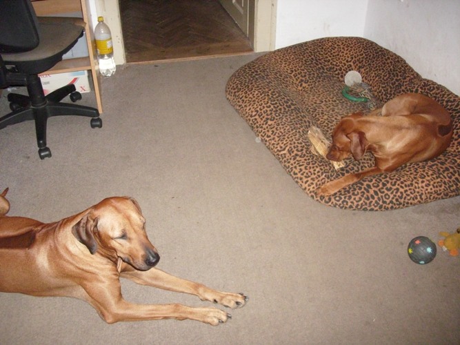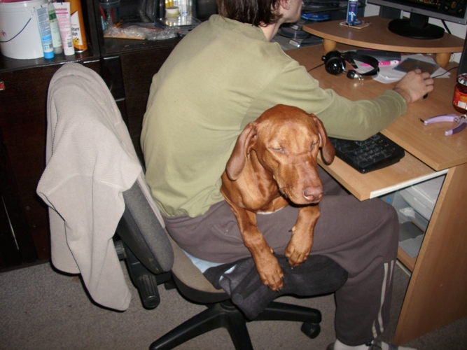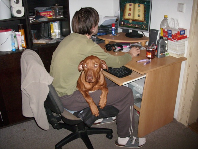 Holky byly zase na chaloupce a pěkně se tam vyřádily. Večer se pracovalo na stránkách a zatím co Lukáš se potil u stránek, naši psi to vyhodnotili po svém