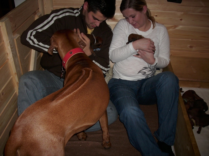 Také tu byli na kukandě Honza s Adélkou a naší Anetkou z A vrhu. Anetka si sourozence prohlédla, ale nějak nechápala, co se s nimi mají páníčci, co mazlit, když mají jí.