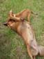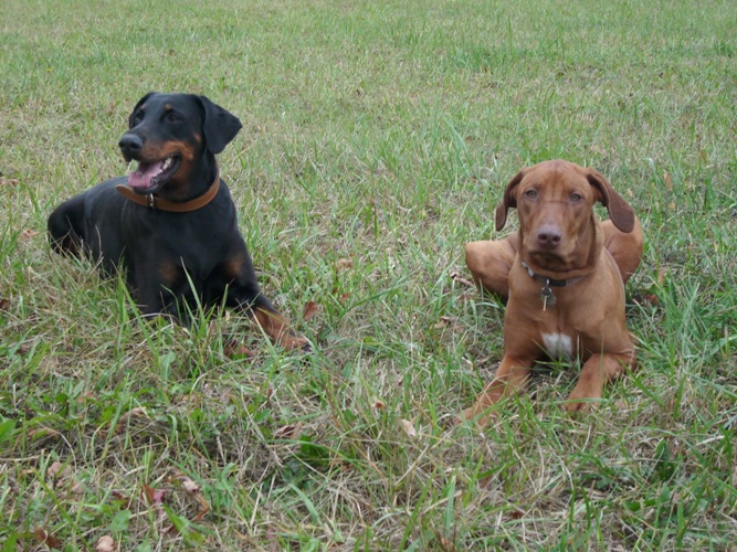Obě holky se hezky vyvenčily, Archynka šla užívat klidu a my jsme vyrazili na vycházku. Měli jsme skvělé parťačky - Naďu s její dobrmankou Adélkou. Byly jsme rozhodnuty naučit Angee štěkat na povel. No, rozhodnuty - Naďa byla. Mě bylo jasné, že první budu štěkat já. Ukázala jsem holkám náš obvyklý okruh. Bylo to prima. Holky se honily a štěkaly jak zběsilé. Ovšem ve chvíli, kdy jsme to chtěly na povel, tak Adélka poctivě předváděla a Angee se poctivě tvářila jako největší idiot. To se vážně jinak napsat nedá. Po několika pokusech to vzdala i Naďa. A tak jsme aspoň udělali několik odložení, procvičili chůzi u nohy na volno i na vodítku. U překážek nám Adélka předvedla aport přes překážku. Bylo by to bezva, kdyby se najednou kolem nás ve vzdálenosti snad 8m neprohnala srna a za ní jakýsi pes. Musím říct, že mě to sice stálo nehet utržený až do masa, ale ustáli jsme to. Myslím, že i srnka nakonec měla radost, protože se nás pes lekl a vyrazil zpátky zřejmě za páníčkem.