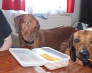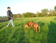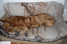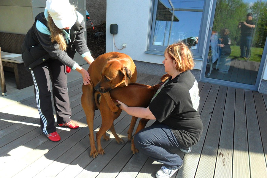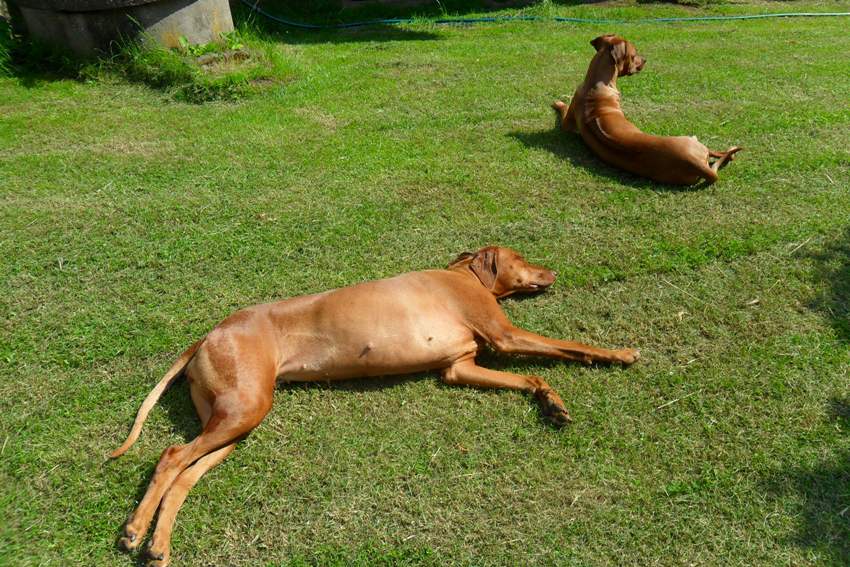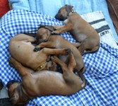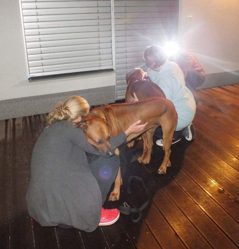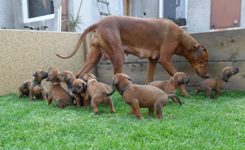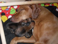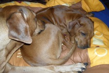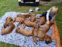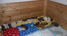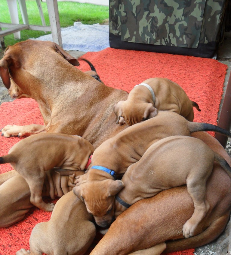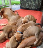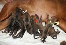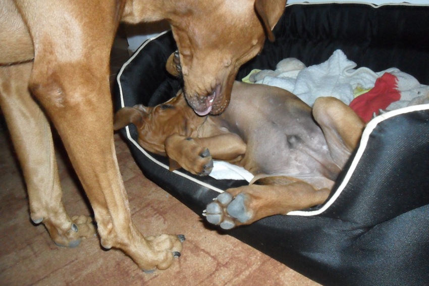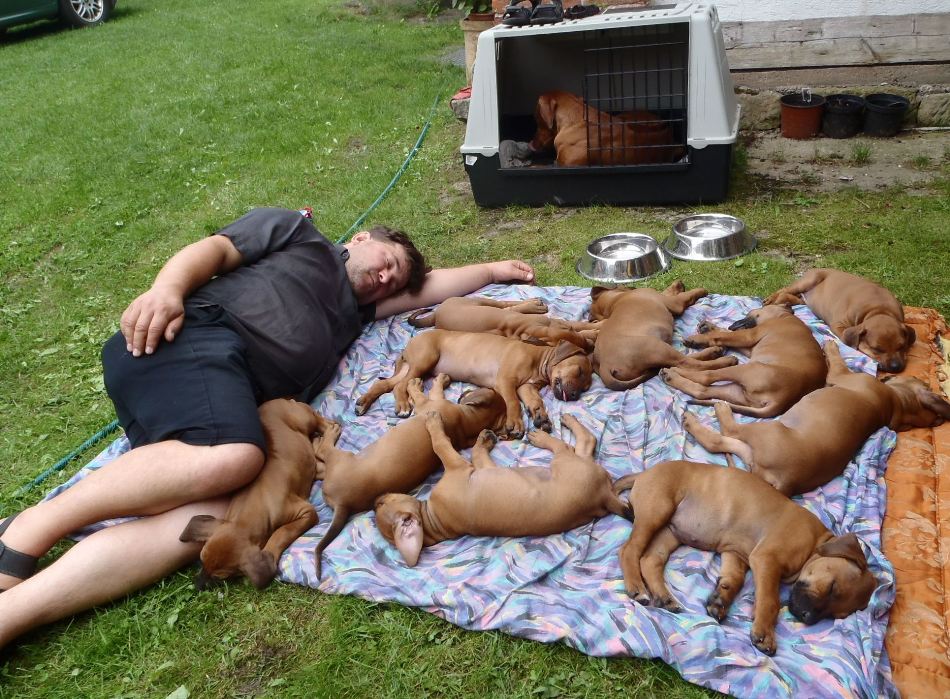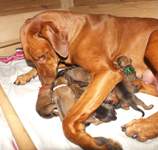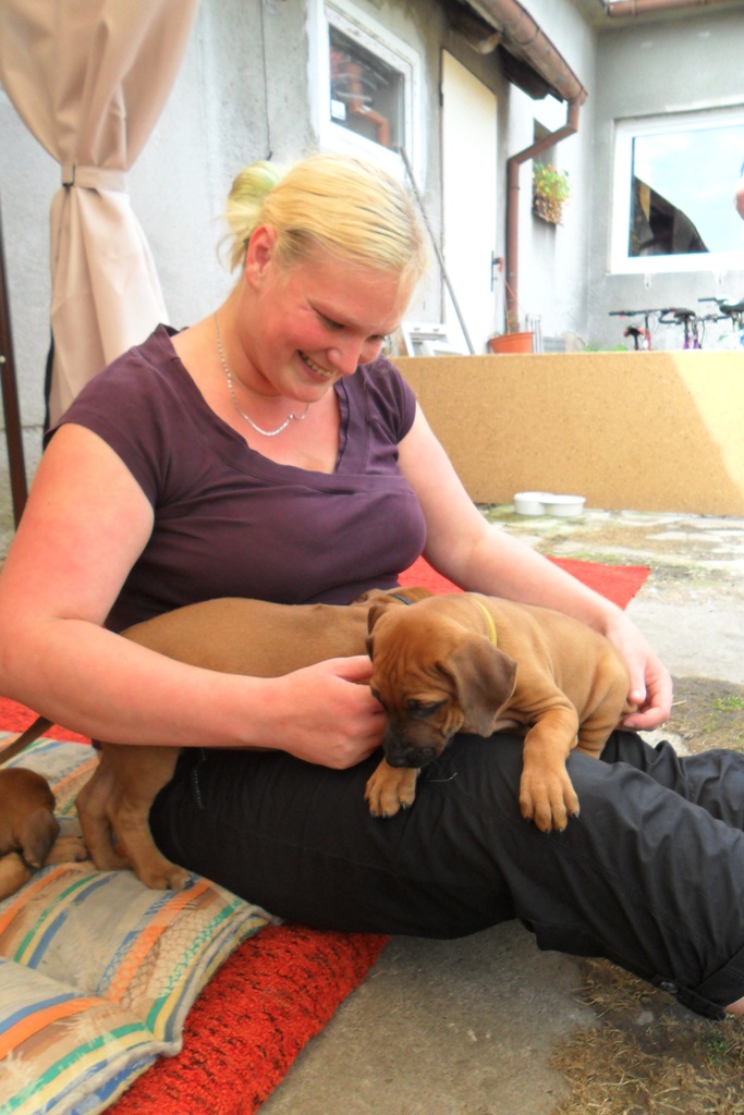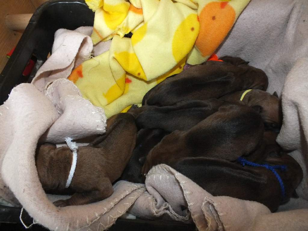Večerní kontrola vrhu paní Renatou Janouškovcovou a Zdeňkou Masnerovou proběhla v příjemném duchu. Tato druhá prohlídka potvrdila tu první. Máme vyrovnaný vrh bez zálomků, DS, s krásnými ridgi správné délky. Kluci jsou opravdu kluci. Za dobré zprávy jsme obě dámy odměnili domácími buchtami a sebe skleničkou vína. Na zdraví miminečka naše