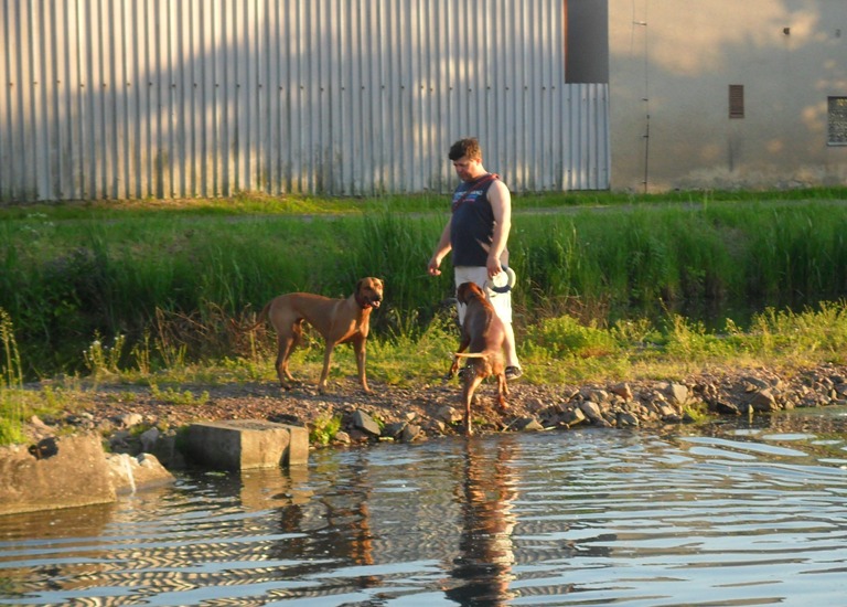 Jinak máme vcelku normální režim. Vycházky většinou než jdu do práce. Odpoledne, při velkých vedrech až večer, plavání na sádkách. Aiminka je stále kroužkový maniak a Gee spíš vytrvalec.