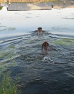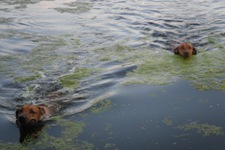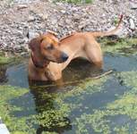 Neděle byla ve znamení dospávání soboty a společné vychajdy na sádka. Prvotní účel čochtaná, druhotný focení Gee. Musím říct, že bod A splnili všichni beze zbytku tu s větším tu s menším nadšením. Kolektivně se potrénovali nepříjemné povrchy (lávka se při pohybu většího osazenstva příjemně vlní - no příjemně..), polítalo se, popáslo, někteří se i naparfémovali - k nelibosti zbytku smečky. Jako vždy jsme zjistili, že z Gee modelka nebude - to Aguška by mohla modeling učit i děvče se stejným jménem leč profláklejším příjmením.