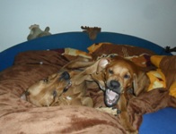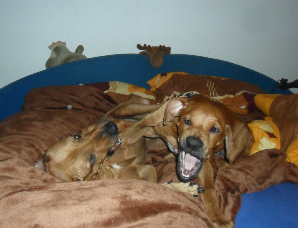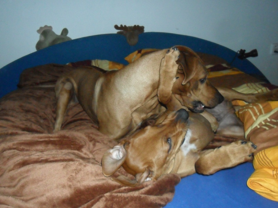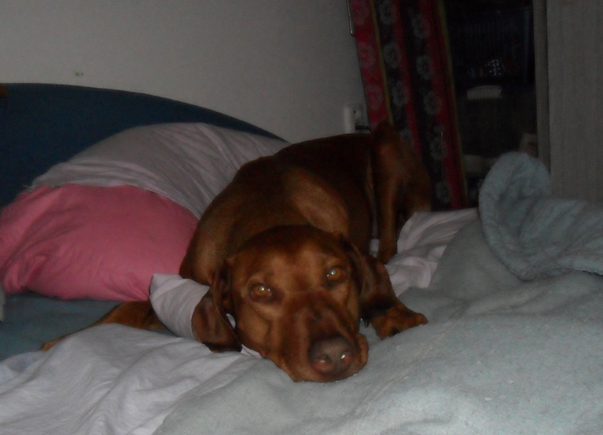 Opravdu vtipný víkend a nové poznání nebo spíš potvrzení staré pravdy - jsou lidé, kteří opravdu nepoužívají hlavu tak, jak by měli. Po poměrně obsáhlé komunikaci jsme vypravili Cornyska do nového domova. S radostí, že nebude až tak daleko a budeme ho moci navštěvovat. To jsme ovšem netušili, že Cornysek jede na párhodinový výlet. A protože štěňátka nejsou lepidla vztahů ani nemůžeme očekávat, že nás vytáhnou z problémů, vrátil se Corny po noci strávené mimo zase hezky domů. Myslím, že si ani nedokážete představit jakou radost z toho měla tetička Aime. Jejich postelové uvítání mám na fotečkách a mrzí mně jen to, že nemám kameru. Náš muchlánek to pojal jako prima zpestření víkendu a já jsem ráda, že je doma.
