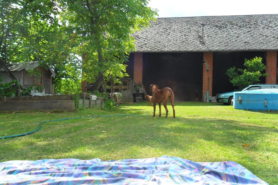 Nejblíž to máme ke Connynce. Zjistili jsme, že ta má kolem sebe nejen slepičky, ale také koníky a ovečky. To bylo divení se. Hrát si nás samozřejmě bavilo nejvíc v prachu ve stodole, takže jsme za chvíli vypadali jako stádo výmarských ohařů. A voda, ta je tam nejlepší z konve - co miska - to je nuda.