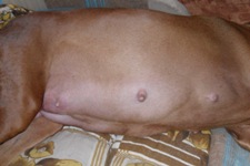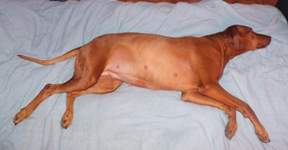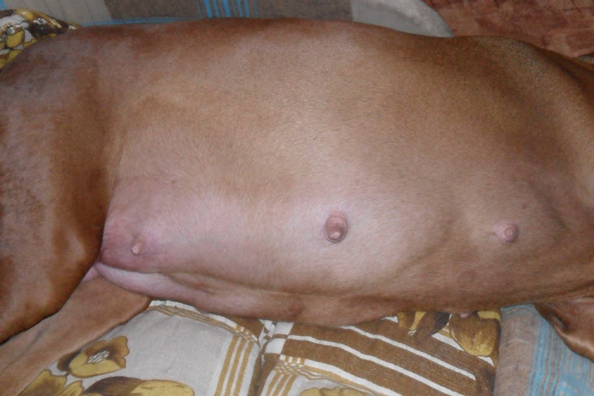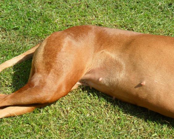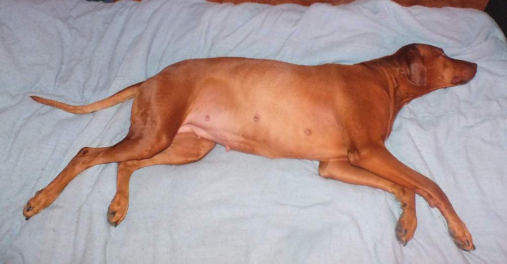 Nějak se nám to krátí...paní chovatelka pravila, že sestry rodily 59 den a poněkud mě tím dostala do stresu. Nic méně Gee se netváří, že by někam pospíchala...bříško už je opravdu pěkné a 6 miminek tam asi není