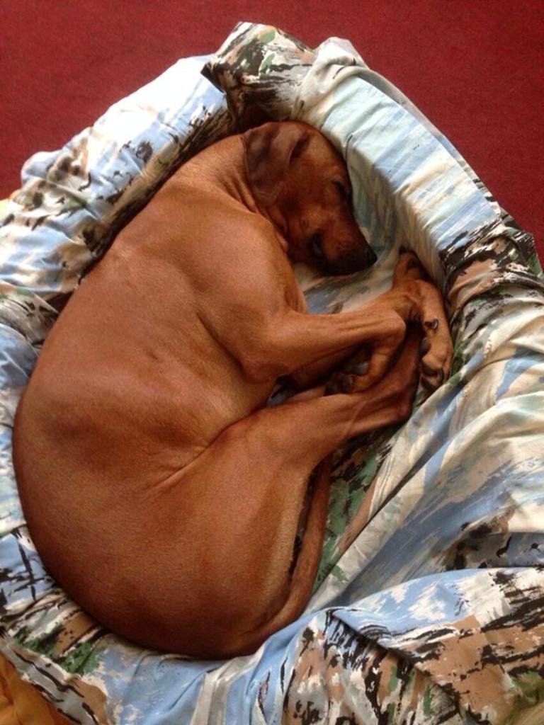 Jediná změna, kterou na ní pozoruju je, že je schopna plácnout sebou kdekoli a usnout. Spí jako špalek a chrápe jak dospělý chlap.