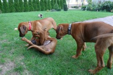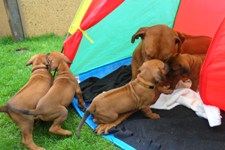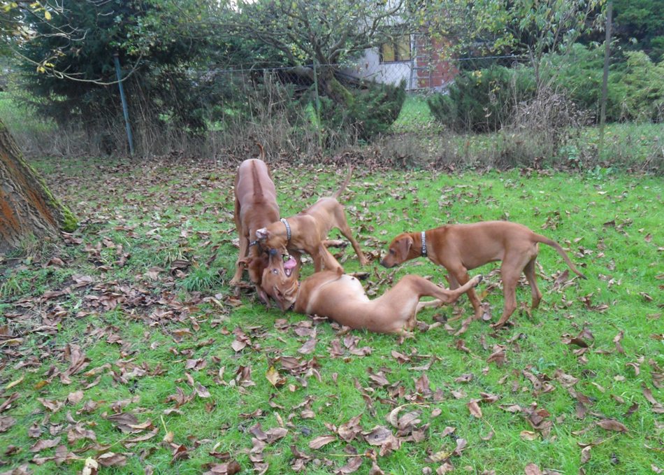 Tak jsme povolali Naďu. Přeci jen nějaká fotečka do galerek se šikne. Jsme zase větší...je legrační vidět, jak se štěnda natahují do výšky, jak je jim najednou kůže malá nebo naopak velká. Všechny fotečky jsou na rajčeti a ještě během dne je přidám i do galerie jednotlivých mimísků. Naši kluci se jmenují Clay, Corny, Corey a Cowley. Děvčátka jsou Crazy, Conny, Corry, Cuffy, Curly a Cathy. Málá ukázka jak si naše děti představují spolupráci.