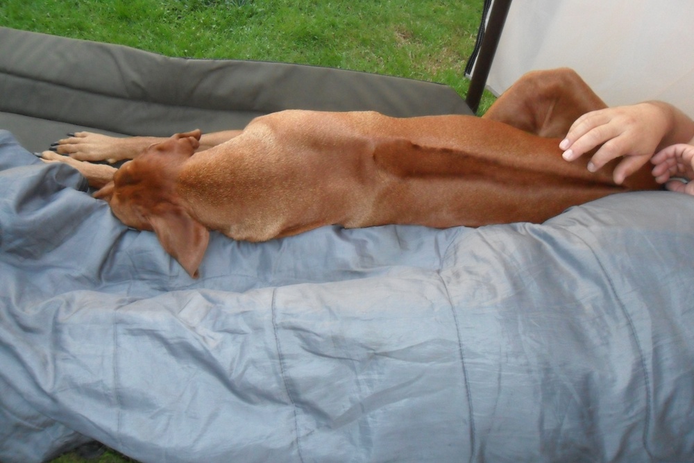 Protože jsou pořád tropické noci rozhodli se páníci, že spolu dáme první bivak venku. Páníček si rozložil postýlku (jak prozíravé) a panička si poskládala bivak vedle našeho domku. Prý aby na nás viděla, hahahááá. Musíme uznat, že na peřině se spí moc prima. Pod peřinou není taky zle...jen jsme nepochopili, co se paničce nelíbí na tom, když si jí lehneme na hlavu. Že prý jí snad nezůstal žádný volný otvor na dýchání, hmm nějaká cimprlich nee?? Každopádně to bylo super a prý když to počasí dovolí, tak si to zopakujeme. Jen musíme vymyslet, jak to udělat, aby se k nám a paničce vešla i mamka. Ta to fakt nedala, ale u páníčka místo bylo...fotečky tady. Příští týden bude focení do galerek, tak jsme zvědaví...