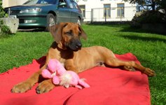 Ozval se nám Akimek se svou rodinou. Žije teď v Německu v malé vesničce, kde všechny udivuje svou vychovaností a při své velikosti i klidnou povahou. Prý tam tuto rasu moc lidí nezná a tak nám dělá velkou reklamu:-). Má také novou paničku, která ho zbožňuje. Akimku, jsem moc ráda, že se máš dobře a obklopuje tě tak prima rodina. Posíláme velké pomuchlání.