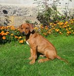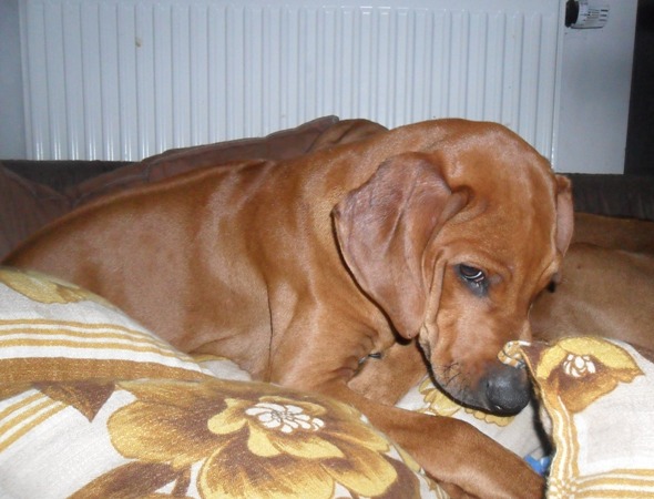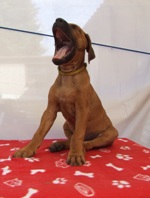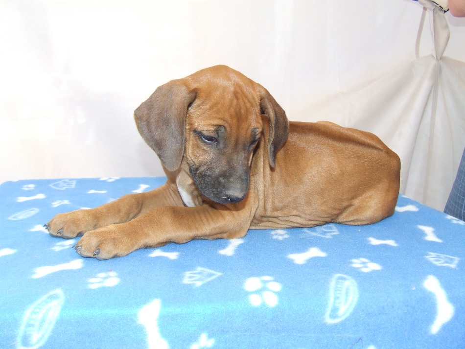 Corny (modrý) je těžký pohodář s nádherným pohledem a sklonem k muchlání. Tělo má pěkně dlouhé stejně jako ridge, který je opět správné délky a šířky. Chcete prima kamaráda na klidné vycházky nebo velký gaučink - Corny je chlapík právě pro vás. Ve svých 13 týdnech váží 14,1kg a paní doktorka říkala, že je naprosto bezchybný. Očkování nekomentoval a tvářil se, že veterina je pro něj běžné zařízení a nechápe, proč se tváříme jako by se mělo něco dít