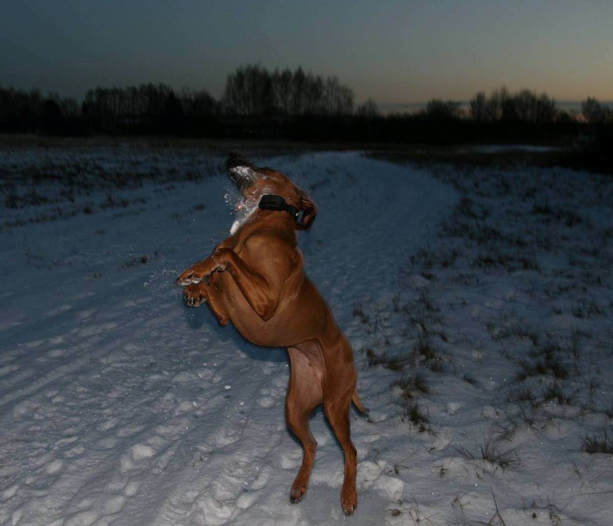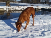 Tak jsme se dočkali i my v Polabí trochy sněhu. Honem vyhnala Gee s Vítkem, aby udělali fotečky, bychom měli důkaz. Všichni, co znáte Gee víte, že focení ze srdce nesnáší...takže - pár fotek máme, ale model z toho mého zrzavého mravenečka prostě nebude