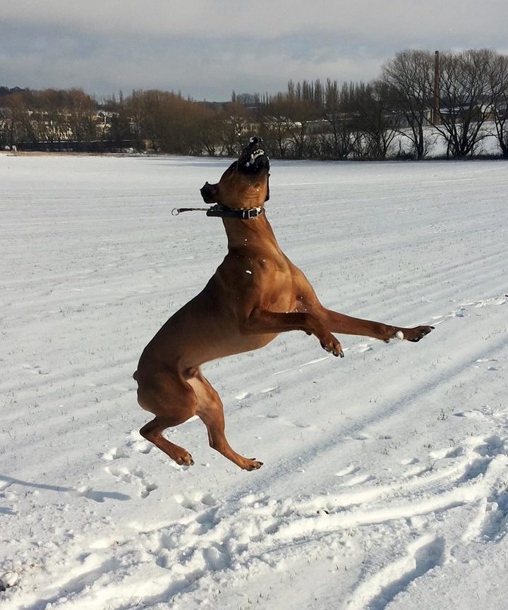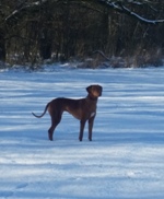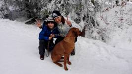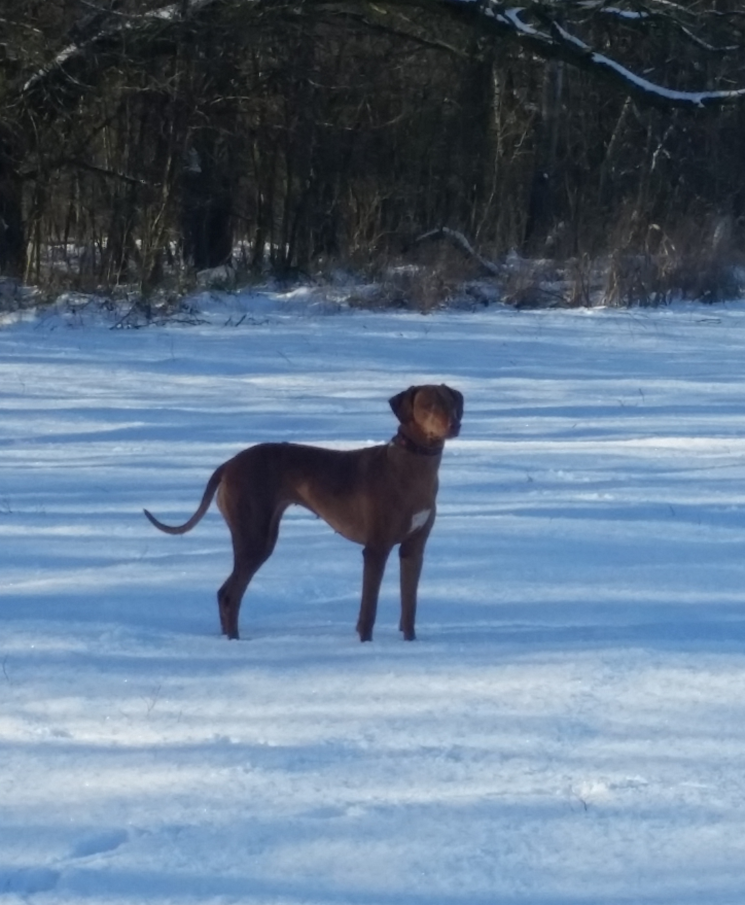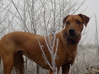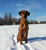 Rustinek je stále sluníčko s výrazem důstojného RR, což by se od něj mohla jeho matka učit! Tomu říkám slušně vychovaný model. Také on si užil krásnou sněhovou vychajdu.