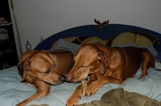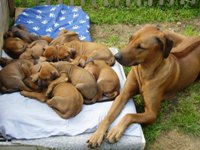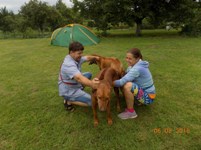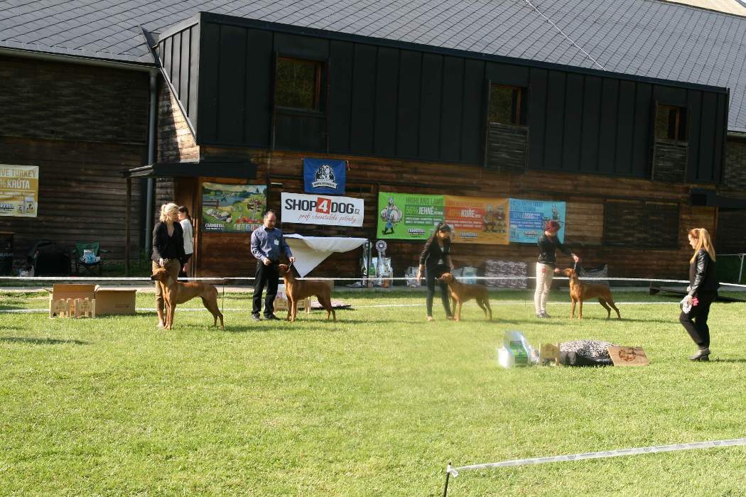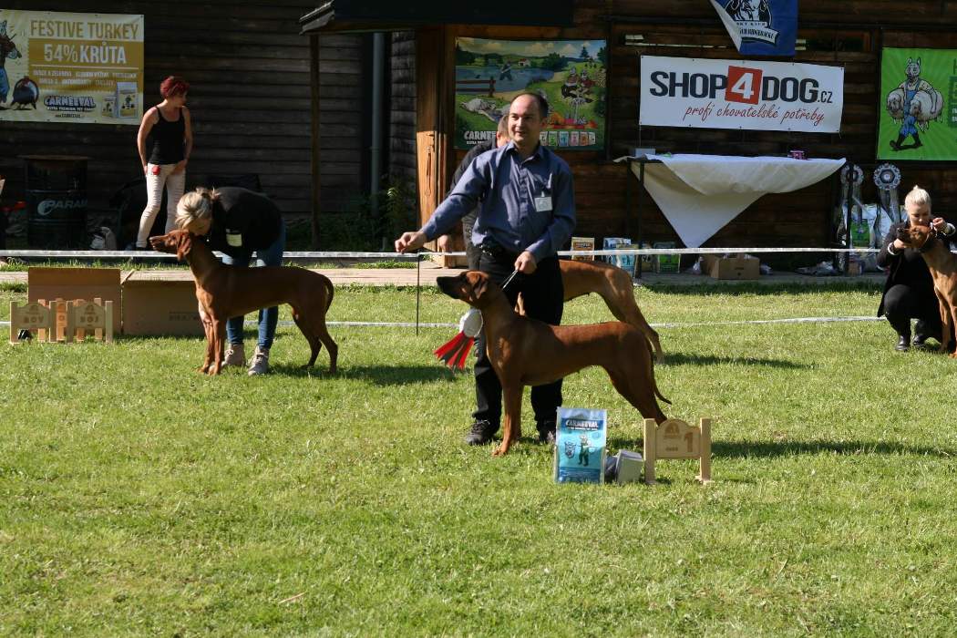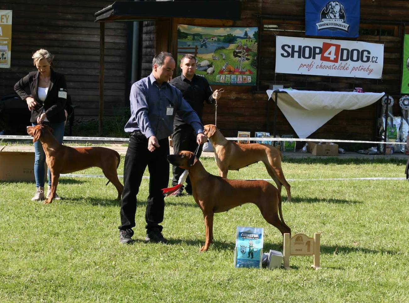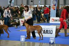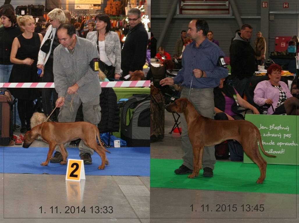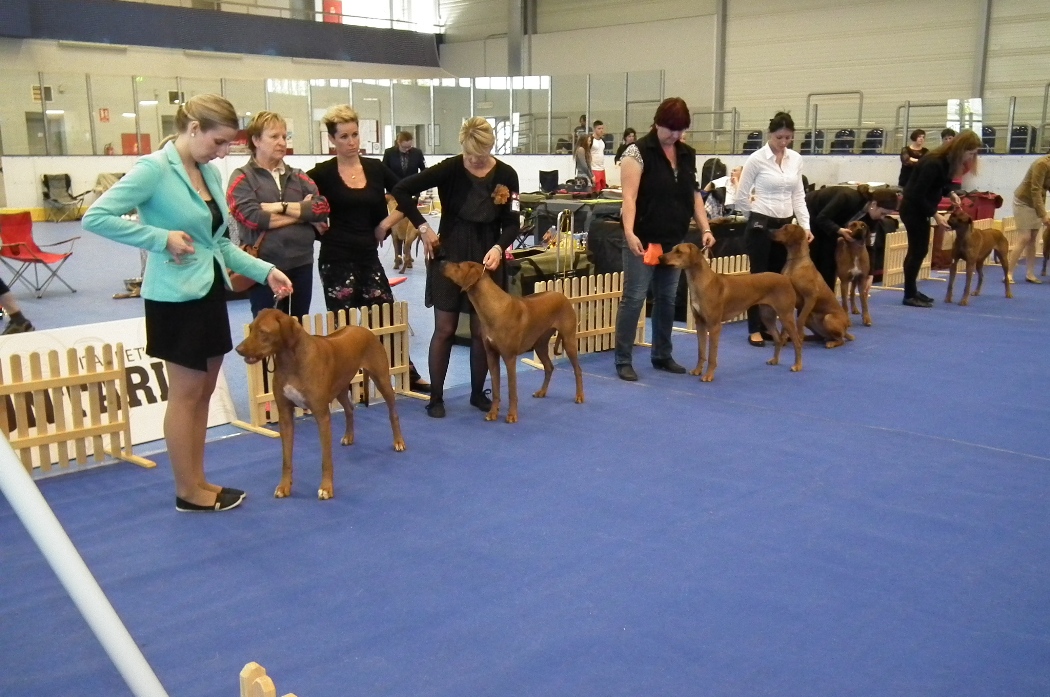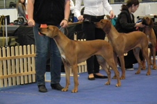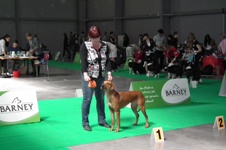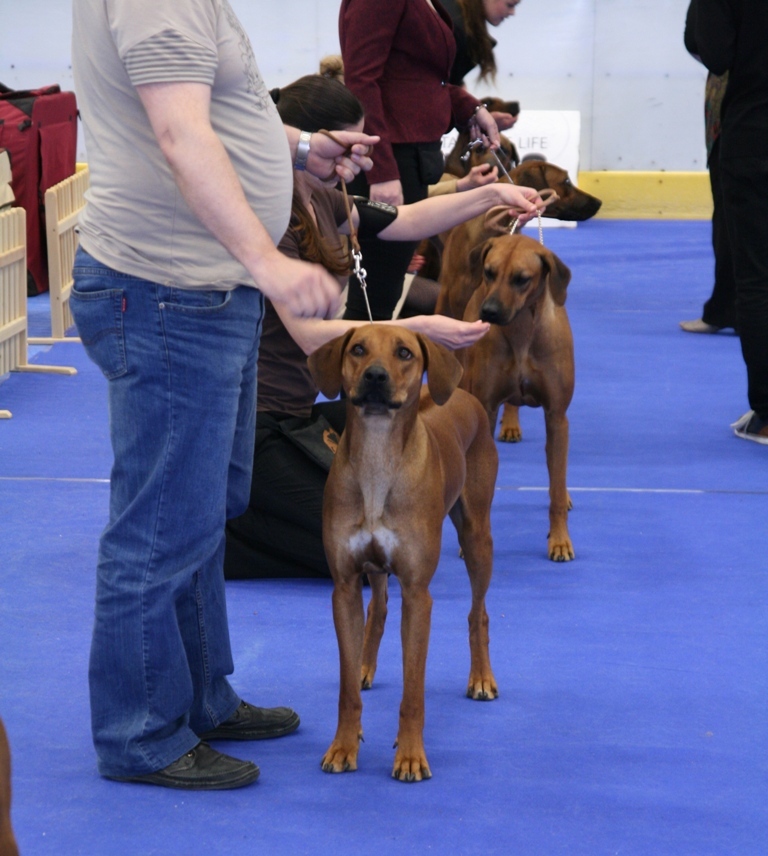 Connča byla na MVP v Č.Budějovicích - posuzovala p. V.Staviarská, mezitřída VD3 - pěkný posudek a předváděla panička a děvčata to zvládla na jedničku. MVP Praha - pan rozhodčí P. Řehánek s posudkem :22 měsíční fena, ušlechtilá hlava,správné výšky i mohutnosti, uši správně nasazené, výborná krční linie, prostorný hrudník, pevná hřbetní linie,úhlení v pořádku, při pohybu dosud měkčí nadprstí u hrudních končetin - mezitřída V3. V Lanškrouně na Klubových výstavách KCHRR po oba dny v mezitřídě V. Opět s velmi hezkými posudky. A teď v sobotu KV Hradec Králové rozhodčí A. Polgar mezitřída V1 VT. Musím říct, že mi děvčata dělají radost - zvládají se předvádět sama bez pomoci handlerů. A když je potřeba moc dobře vystaví i páníček :-). Máme z vás radost!