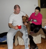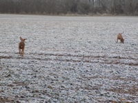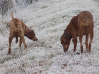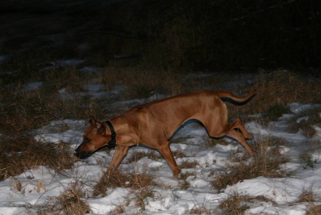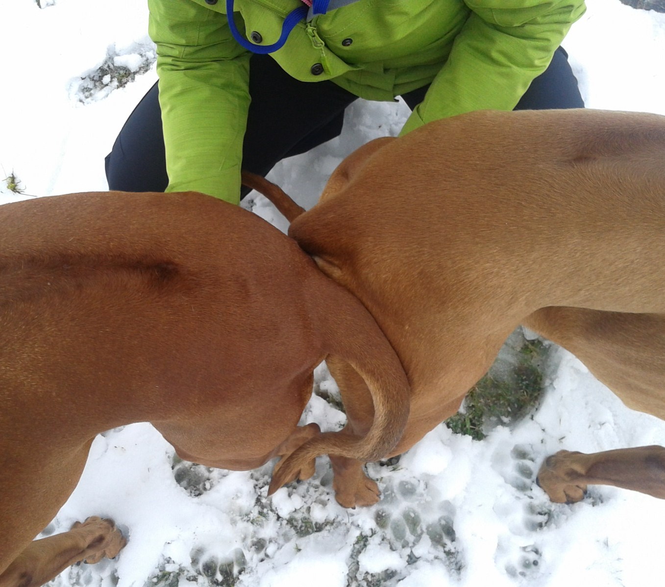 . Cesta byla super a za tři hodiny už Gee kontrolovala Taariqovo království. Tedy nejdůležitější bylo zjistit jestli má dobrou či lepší trávu než my. Pak už přišel na scénu pan dokonalý...romantika naší princezně evidentně nic neříká a představa lítání po zahradě ji rozhodně nenadchla. Po kontrole, že je Taariq kluk dala jasně najevo, že ona je tu kvůli důležitějším věcem než je nějaké namlouvání. Později jsem si uvědomila, že dost možná nechtěla postávat a lítat v mokrém sněhu - pak ovšem nechápu, proč narozdíl od Carinka svázání trvalo víc jak půl hodiny. Ale to je prostě naše bláznivá Gee. Dali jsme si kávu a čaj, řádně jsme ty naše zrzavé miláčky pomluvili a vyrazili k domovu. Mělo mi být jasné, že tak hladký průběh bude po zásluze potrestán.