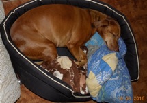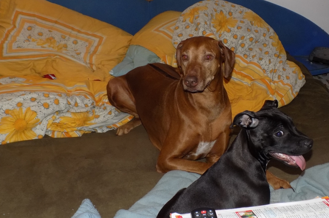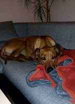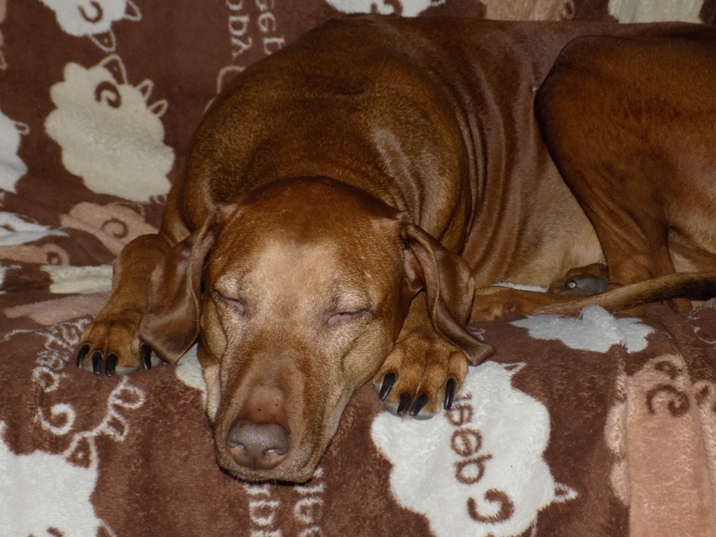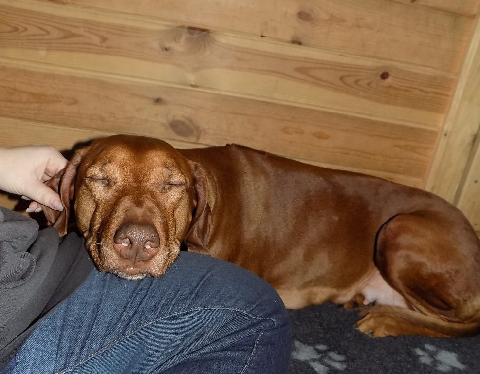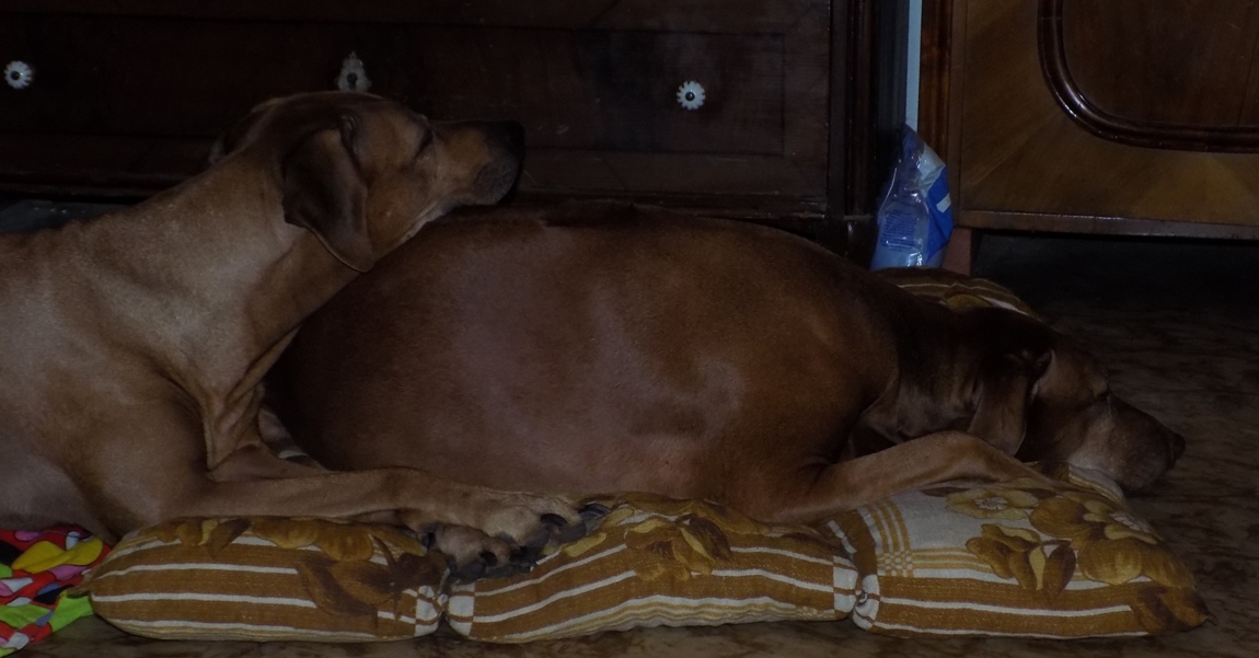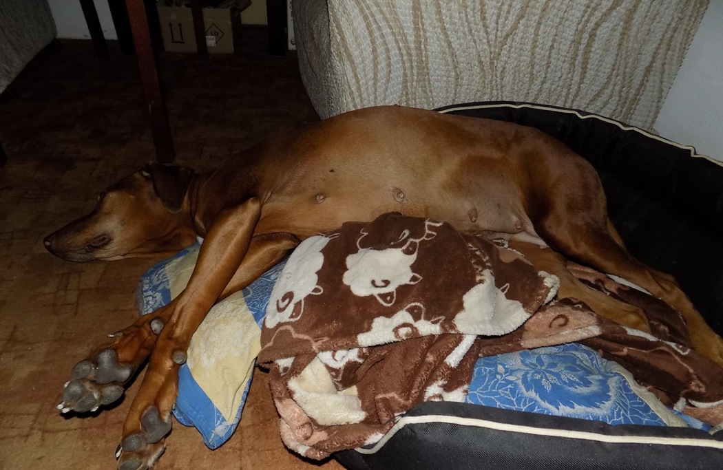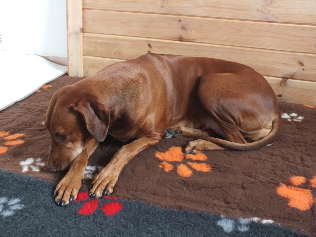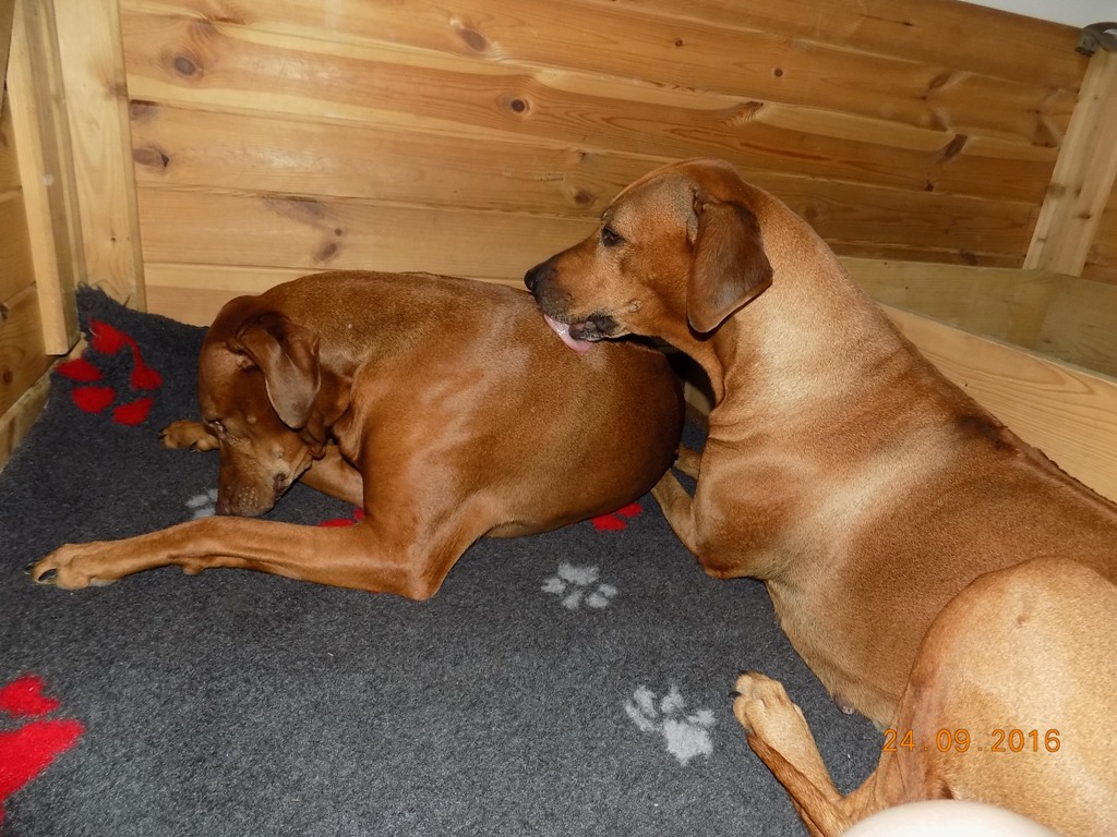 Geenuščino nechutenství odešlo tak rychle jak přišlo...dokáže hned po své baště za člověkem přijít a tvářit se, že jídlo neviděla dny, co dny týdny, co týdny roky! Ráda si skousne buvolí kostičku s dršťkama (kousek nechá Aimince) a pak konečně unavená odpadne do pelíšku, který se začíná nějak zcvrkávat...když se jí nepodaří něco z páníčků vydolovat - trucuje.