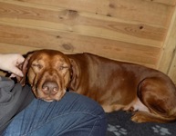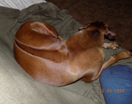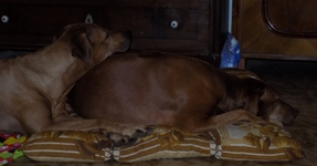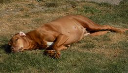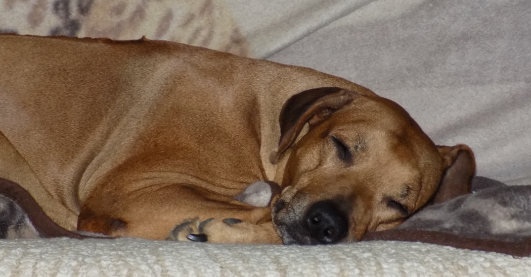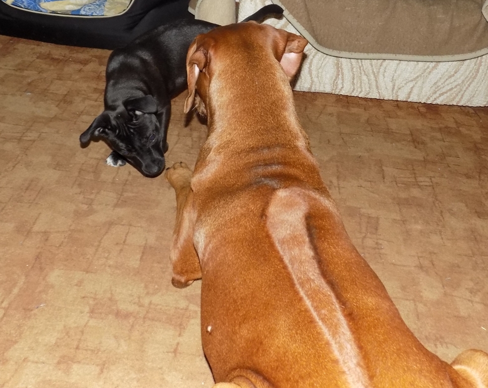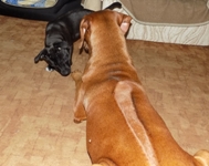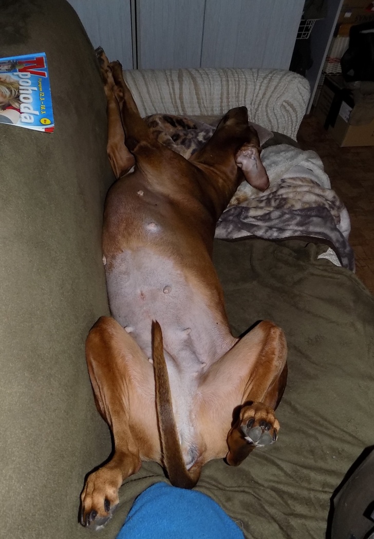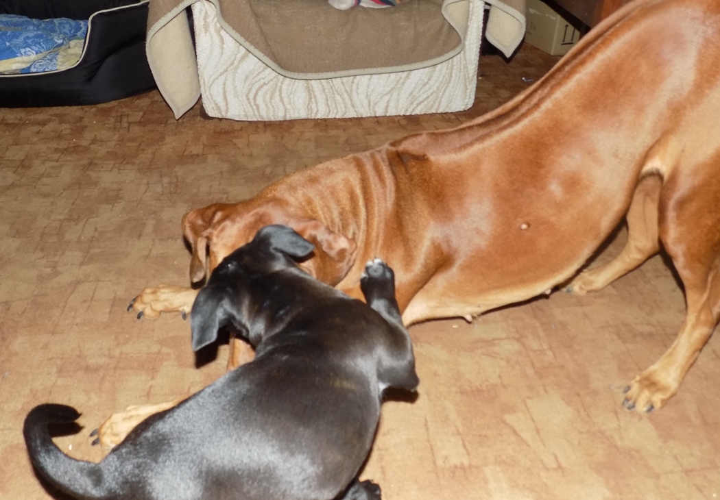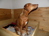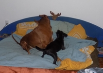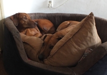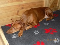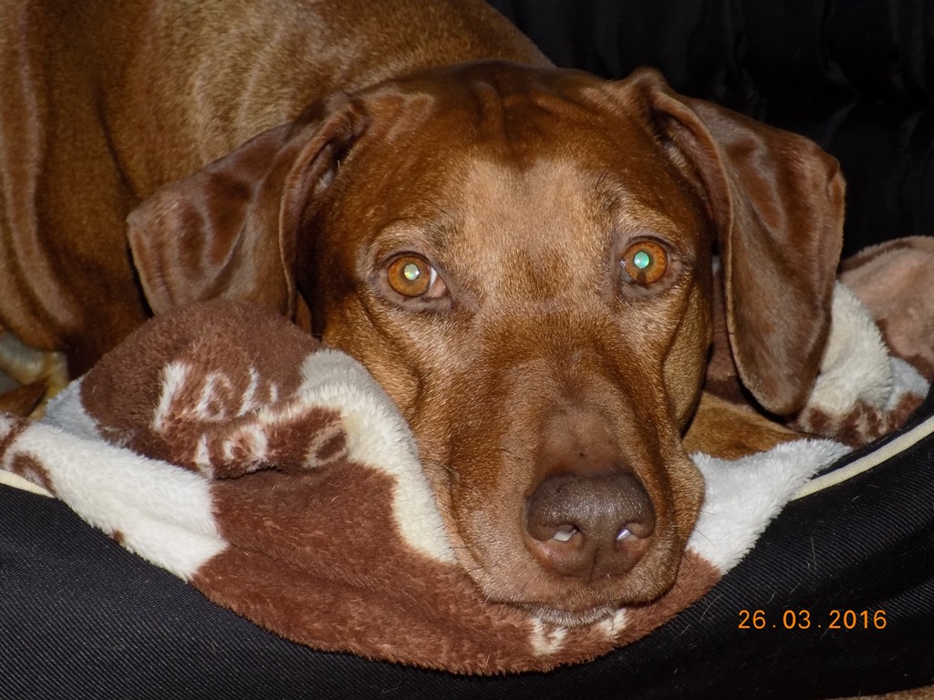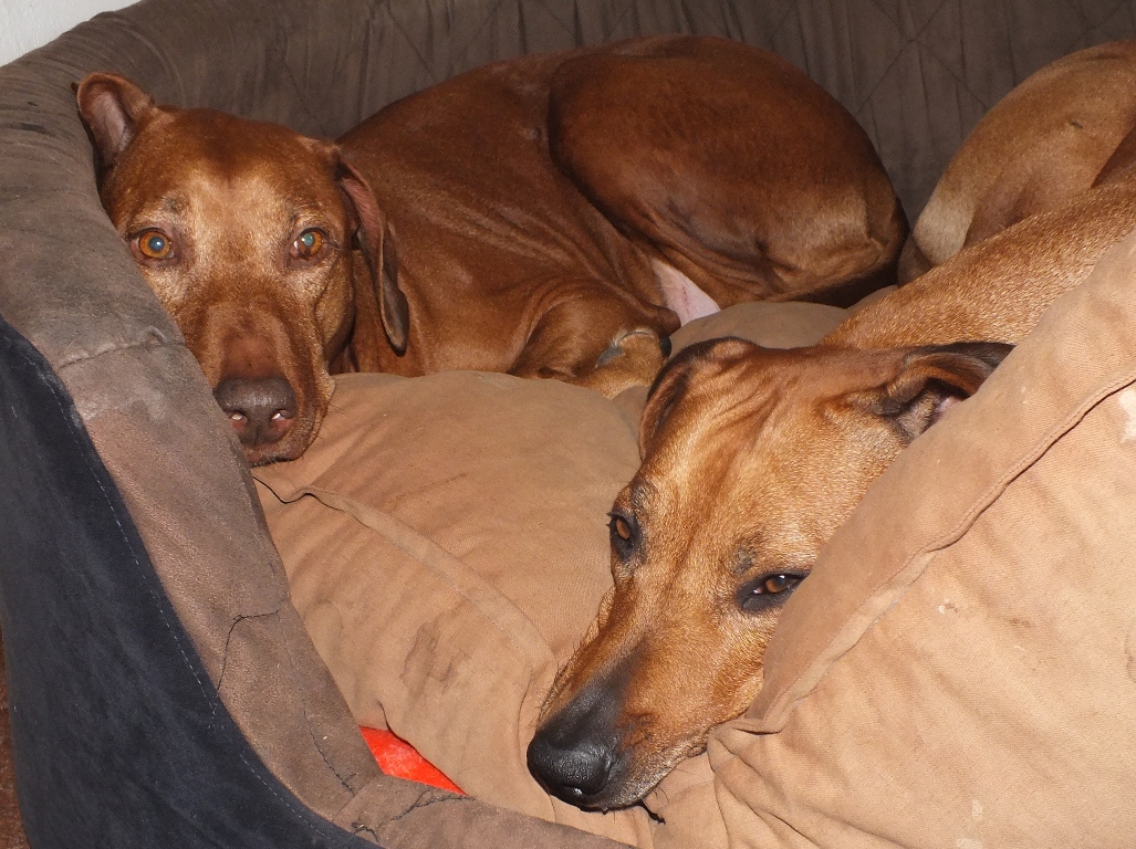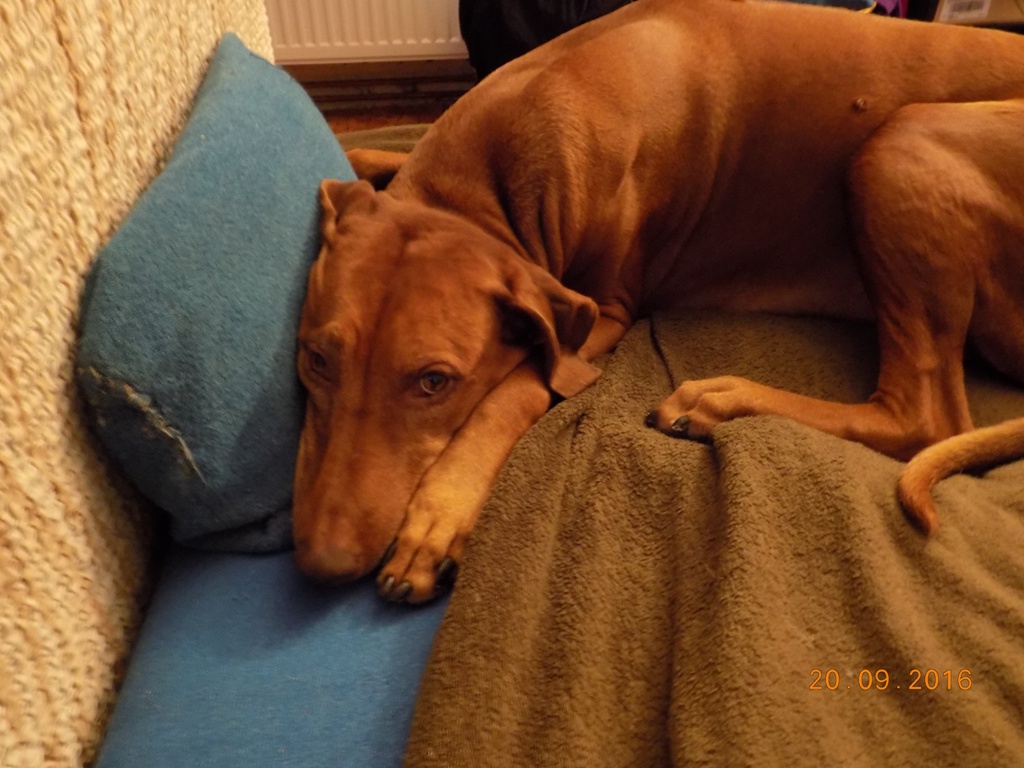 Geenuščino nechutenství odešlo tak rychle jak přišlo...dokáže hned po své baště za člověkem přijít a tvářit se, že jídlo neviděla dny, co dny týdny, co týdny roky! Ráda si skousne buvolí kostičku s dršťkama (kousek nechá Aimince) a pak konečně unavená odpadne do pelíšku, který se začíná nějak zcvrkávat...když se jí nepodaří něco z páníčků vydolovat - trucuje.