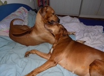 A protože se Geenuška velice rychle vrátila do své obvyklé kondice - včetně vybalování věcí (jako první vyrabovala rozlišováčky, zřejmě kontrolovala, jestli jich máme na příště dost) a trhání prostěradel, rozhodli jsme se, že krytí zopakujeme. Náš vytoužený D vrh s princezničkou pro nás zkusíme na podzim. Tak na nás myslete a pokud by Vás štěňátko z tohoto spojení zajímalo napiště nám.