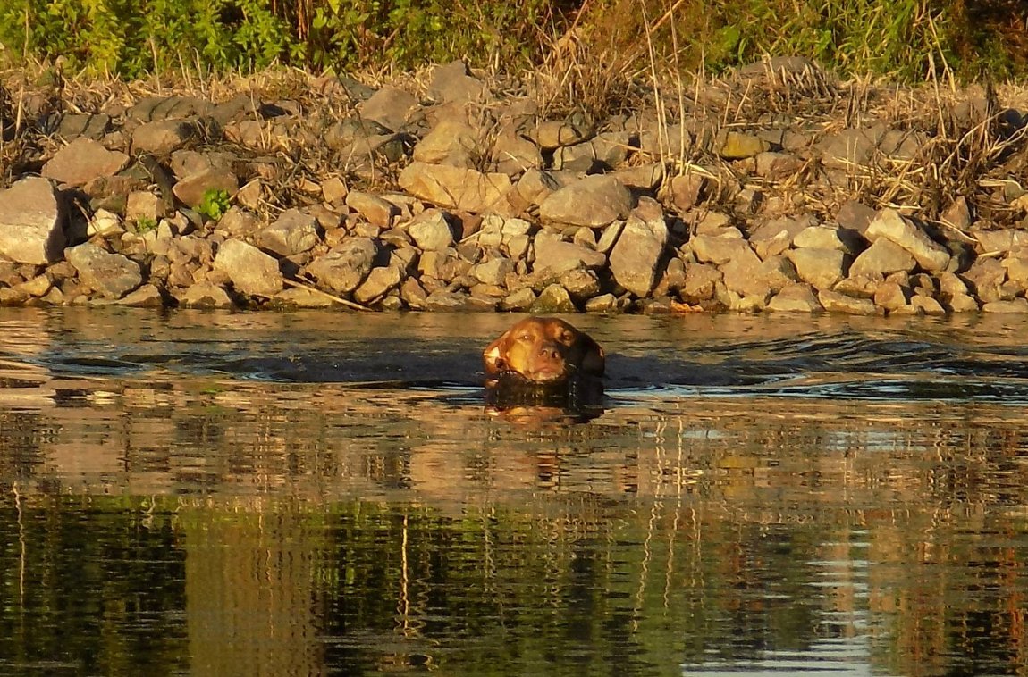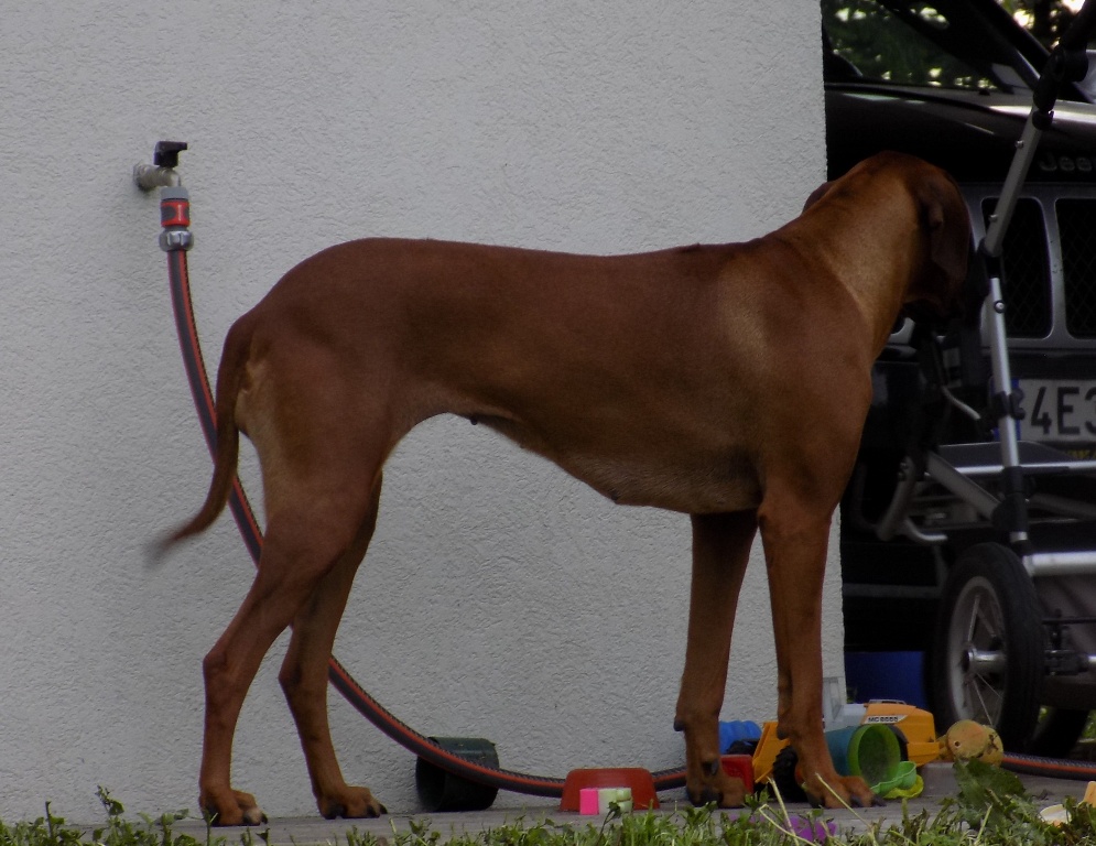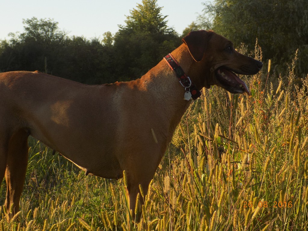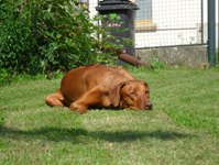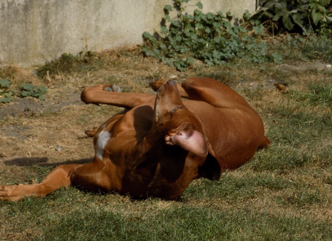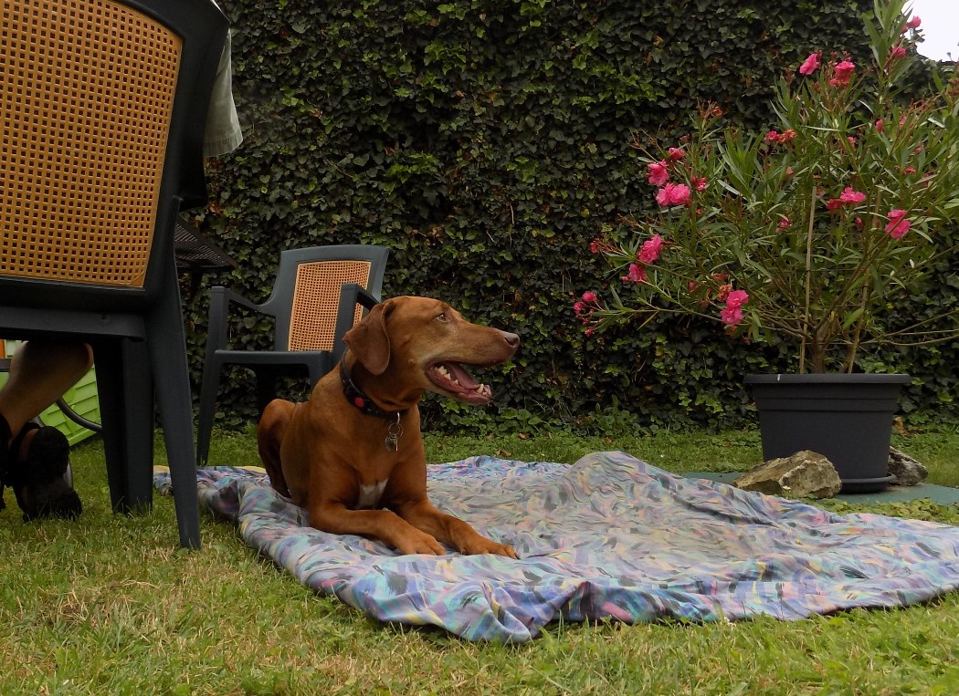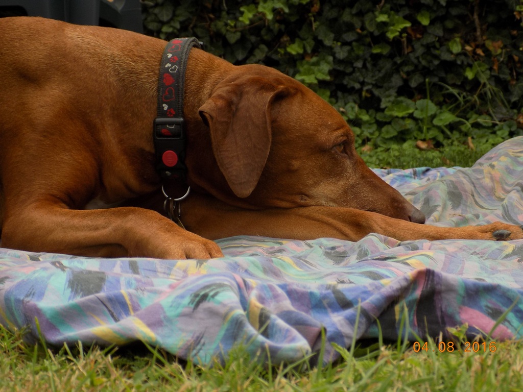 Celý srpen má neměnný program - klasické vycházky s pravidelným plaváním. Kontrola polí kde už se jen práší a Geenuščino neustálé popásání. Zdá se, že plavat budeme moct ještě dlouho - počasí to aspoň slibuje. Tak uvidíme. po vycházkách děvčata relaxují - každá dle svého. Gee je muchlavá a stále něco loudí.