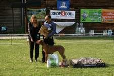 Kejsinka (Cathy) byla na rozdíl od Connynky přihlášena v open třídě. MVP Praha V - 22 měsíční fena, správného rámce, ušlechtilá hlava, nůžkovitý skus, tmavé oko, uši správně nasazené, výborná krční linie, prostorný hrudník, ocas správně nasazen i nesen, pravidelný pohyb. V Lanškrouně stejně jako sestra po oba dny výborná. Tento víkend třešnička na dortu a úspěch na KV ČKRR. Rozhodčí odborník na plemeno S. Kuralt třída open a V1 CAC a Nej fena výstavy - máme nepopsatelnou radost! Kejsinka se svým páníčkem roste den ode dne. Spolu jsou ti nejparťáci v kruhu i mimo něj. Dělají mi obrovskou radost a vím, že o nich ještě uslyšíme!