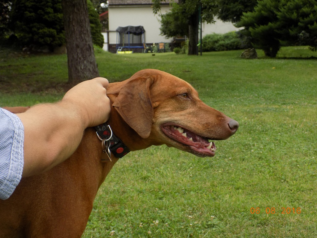 Prochajdy jsou na denním pořádku, rána začínají být chladnější, tak už vynecháváme plavání. Za to jsme po dlouhé době vyrazili k brodu...vody málo jako už dlouho ne - stačí tak na omočení kontíčků a napití. Pole u Bystřice je na lítání zřejmě lepší než to u nás, protože si ho holky prolítaly jako už dlouho ne. Na Lukách jsou balíky a my si ani letos neskočíme - radši - příští rok si to určitě vynahradíme :-). Geenka začíná trochu trpět nechutenstvím.