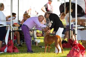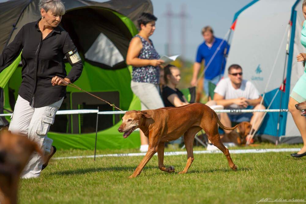 Tradiční klubové výstavy se snažíme vždycky alespoň navštívit. Letos jsme obě děvčátka přihlásili. Lákali nás rozhodčí Martin Croeser (JAR) a Gill Lawless (GB CHS Faahac). Babi Angee se po letech vrátila do kruhu, aby podpořila svou vnučku Adele. Aby byl ten návrat stylový, tak se předváděla s lidskou maminkou Evou. Děvčatům to moc slušelo a užily si to. Angeenka dostala velkou pochvalu za své krásné zoubky. V nabité třídě veteránů se neztratila s pěknými posudky byla V/14 a VD/15. Adele se v sobotu předvedla s Deniskou a v neděli jsme se šli znemožnit spolu. Po oba dny se předvedla celkem v klidu a byla V/17 v sobotu a V/11 v neděli. Takže jako trenink se to celkem vyvedlo.
